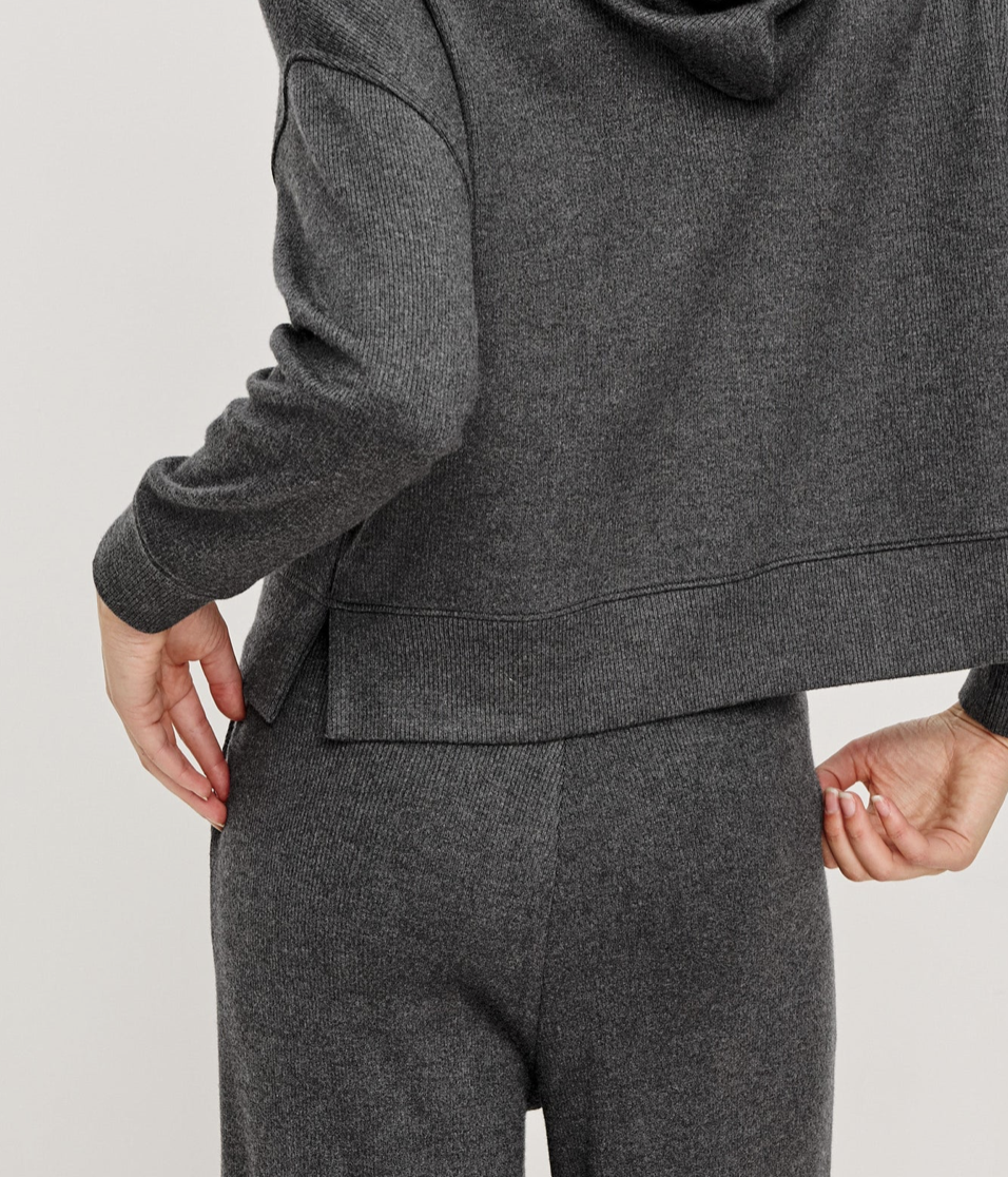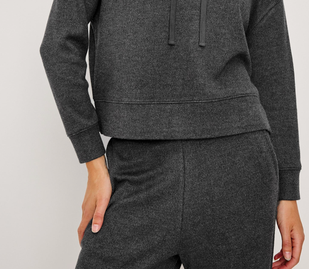 Regular price €150.00Rails Charcoal Hooded Soft Brushed Rib Rayon Blend Relaxed Fit Top.