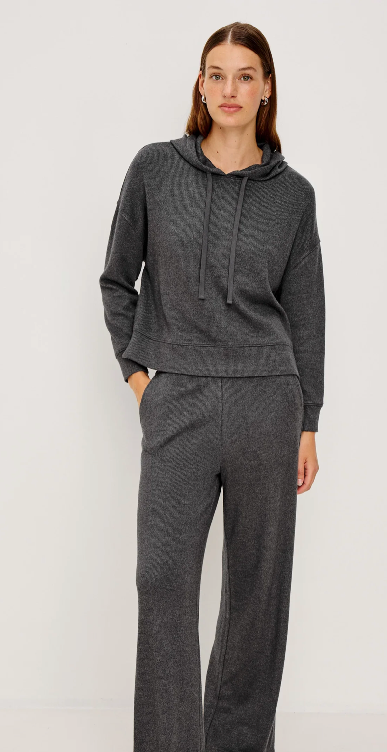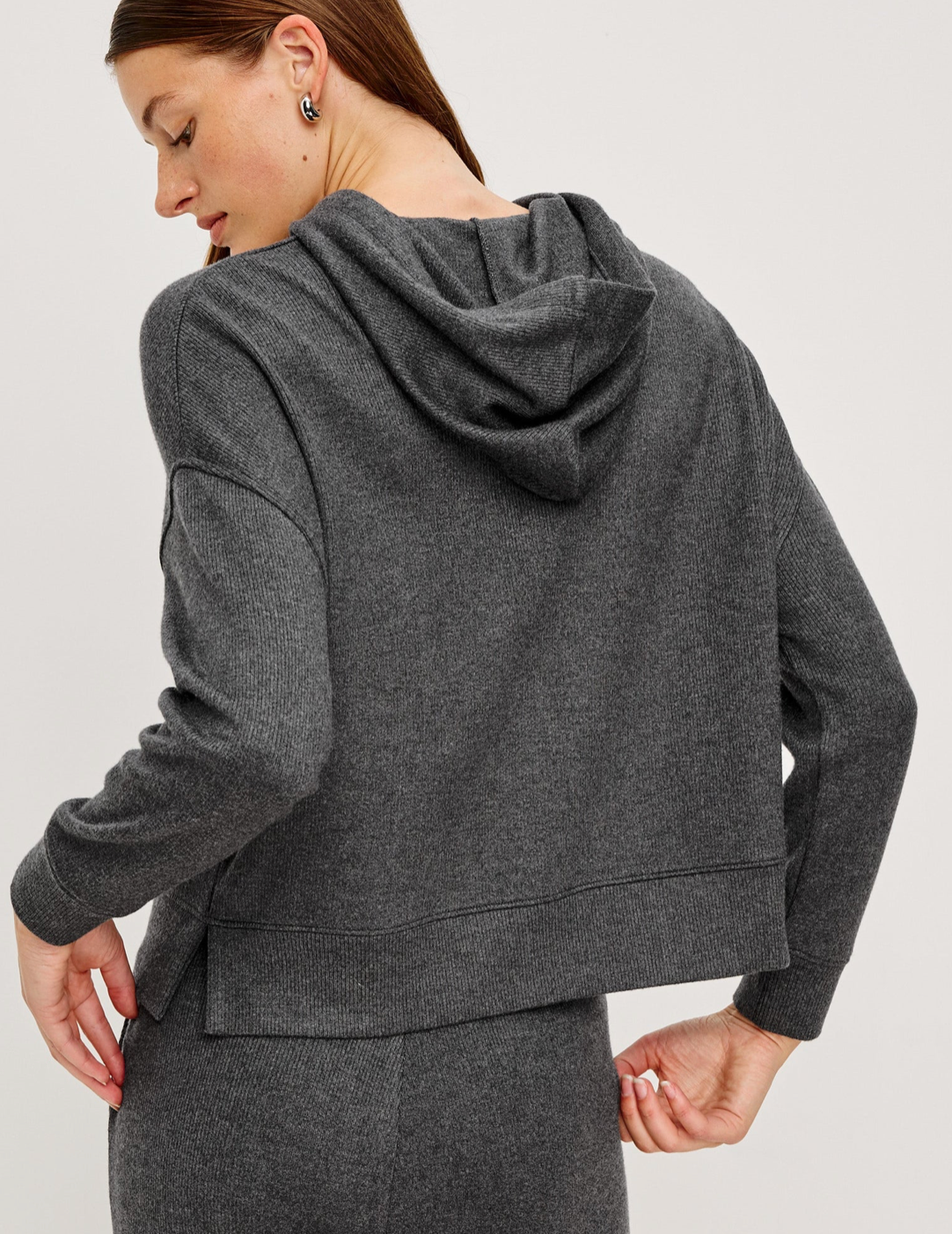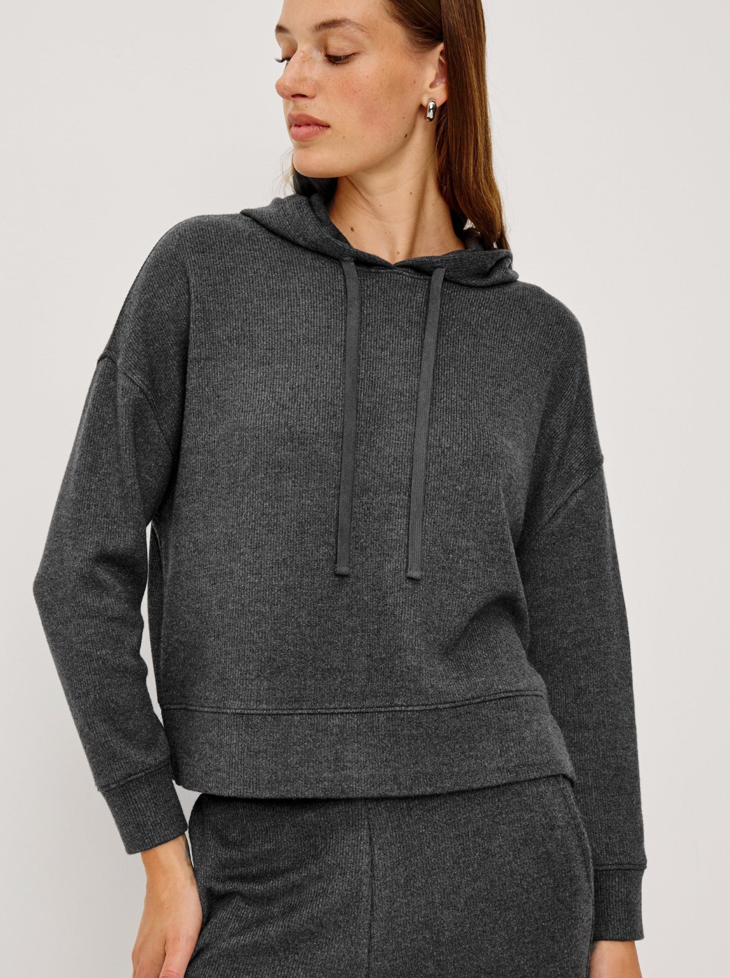 Regular price €150.00Rails Charcoal Hooded Soft Brushed Rib Rayon Blend Relaxed Fit Top.