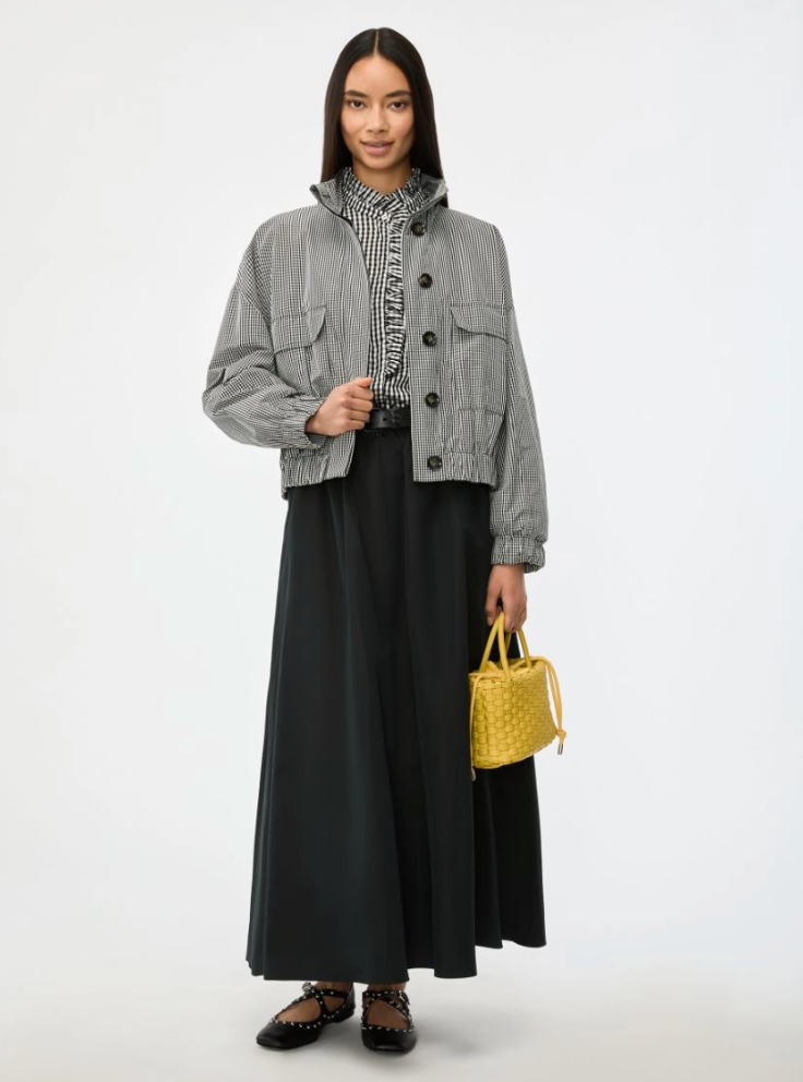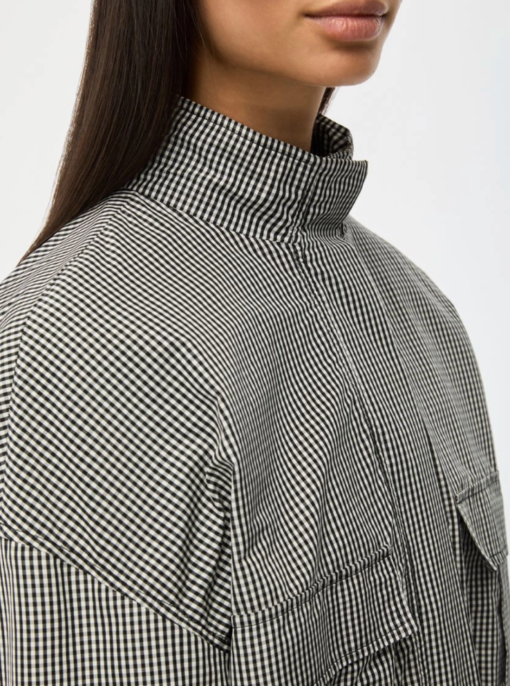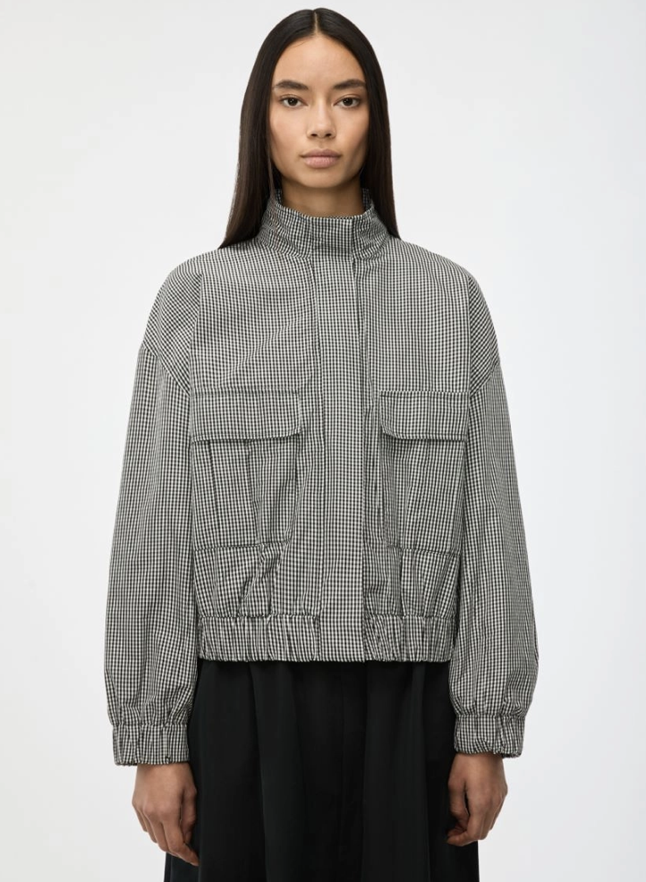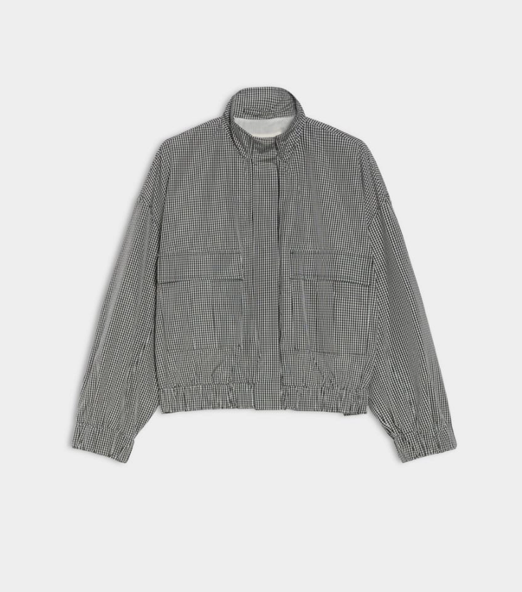 Regular price €250.00i Blues Black/White Gingham Cotton Blend Taffeta High Neck Jacket With Elasticated Waist.
