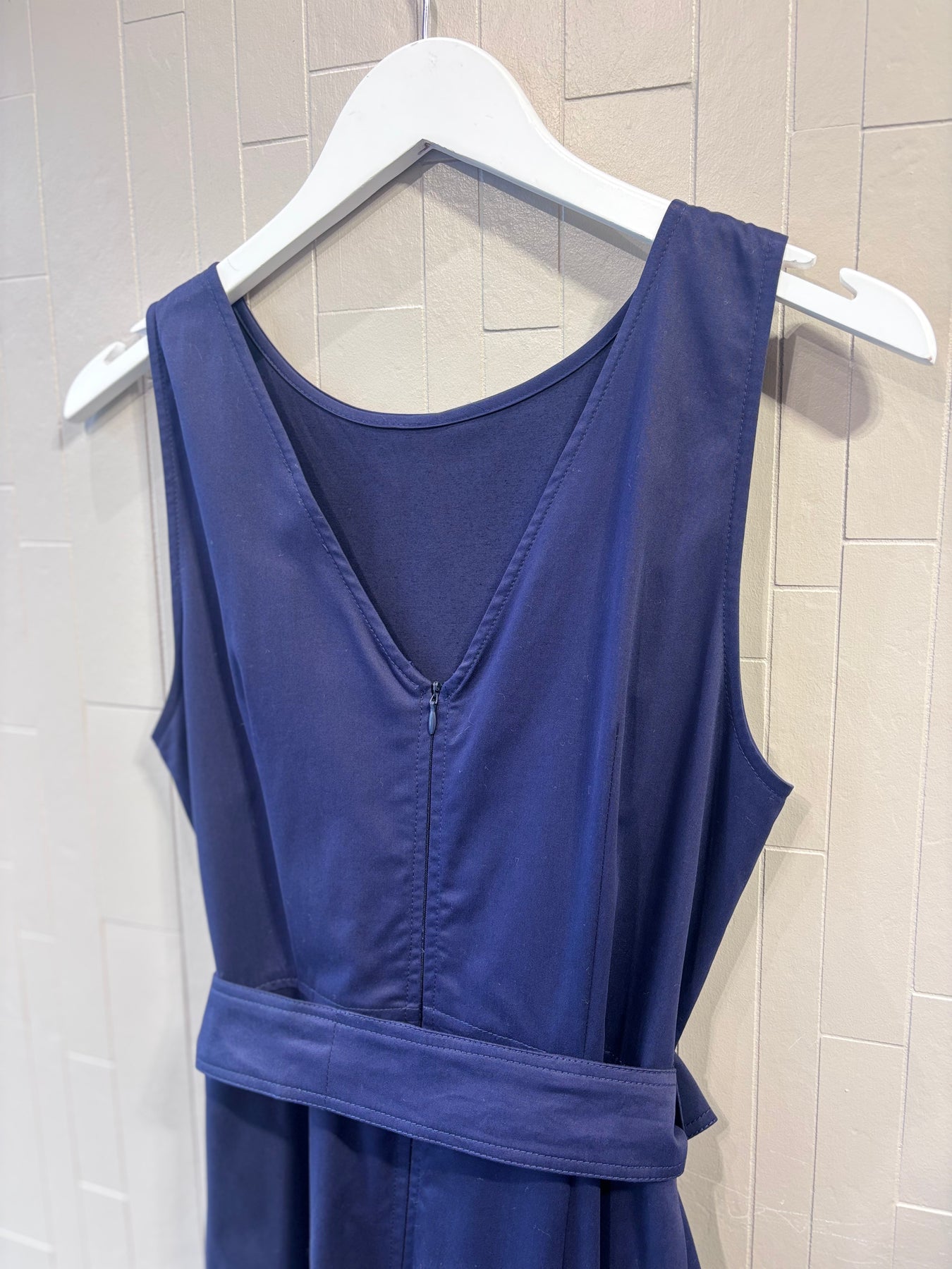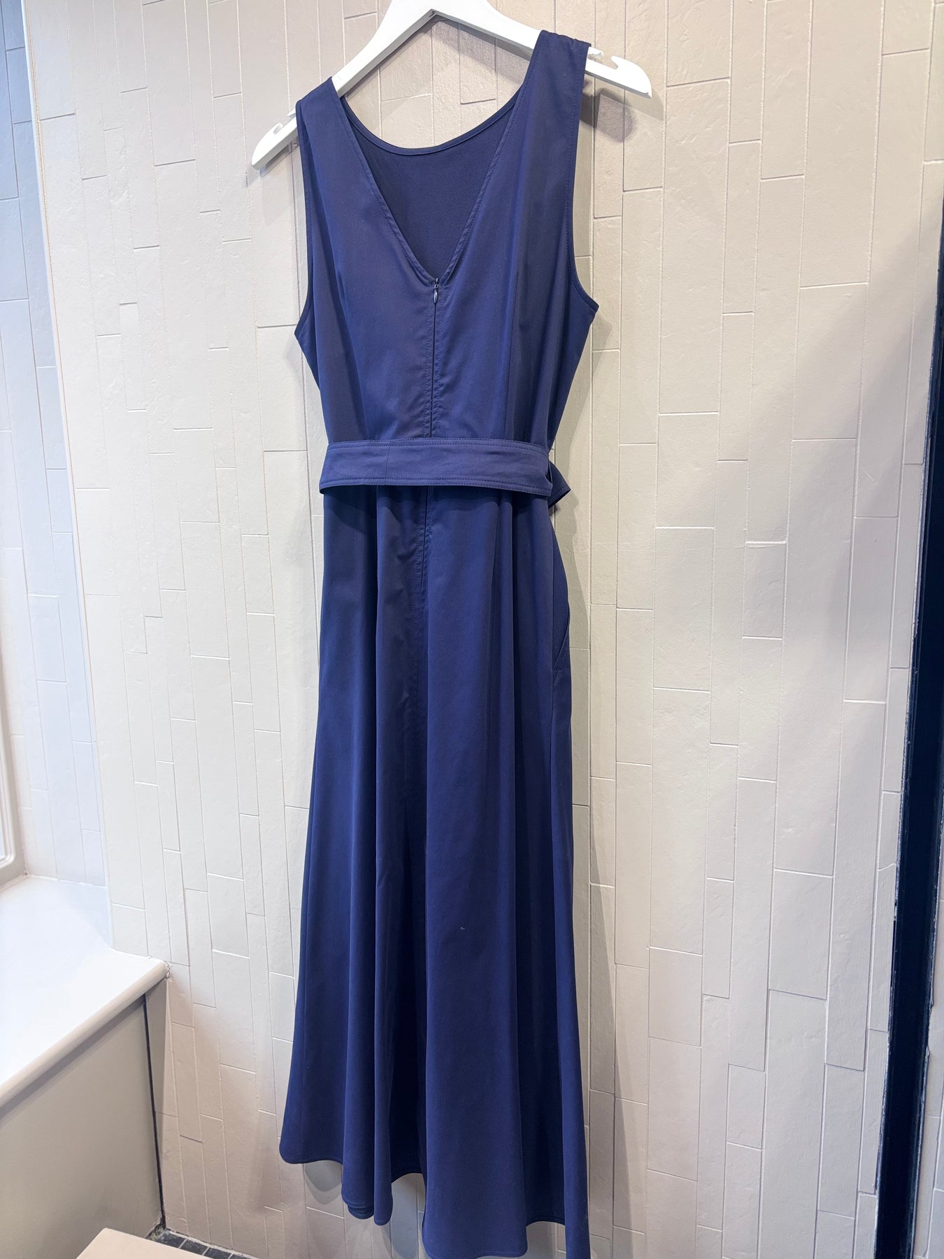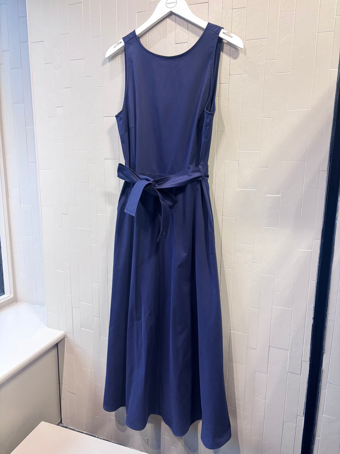 Regular price €230.00Emme Navy Cotton Sleeveless Long V-Back Dress With Belt.