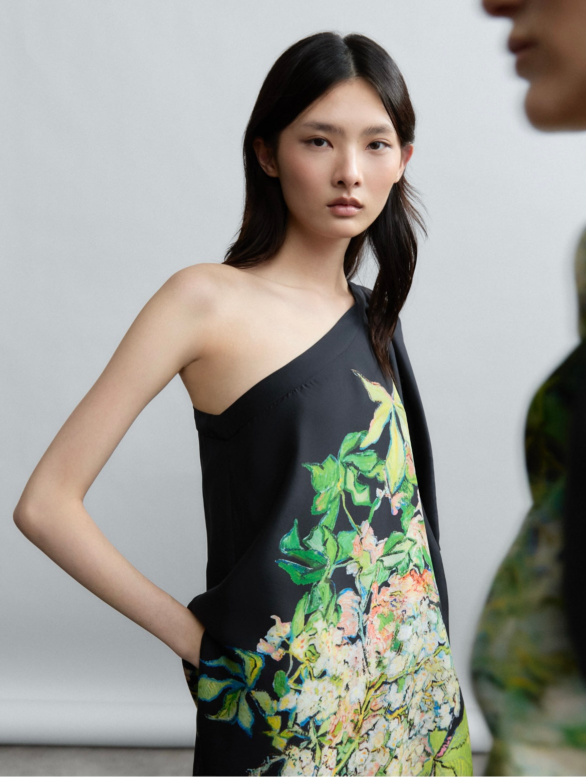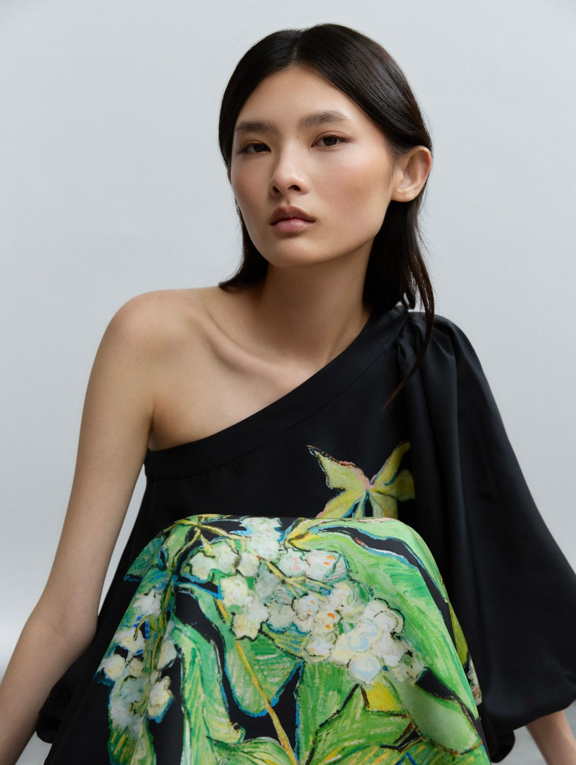 Regular price €460.00Psophia Black 100% Silk Floral Print One Shoulder Long Dress.