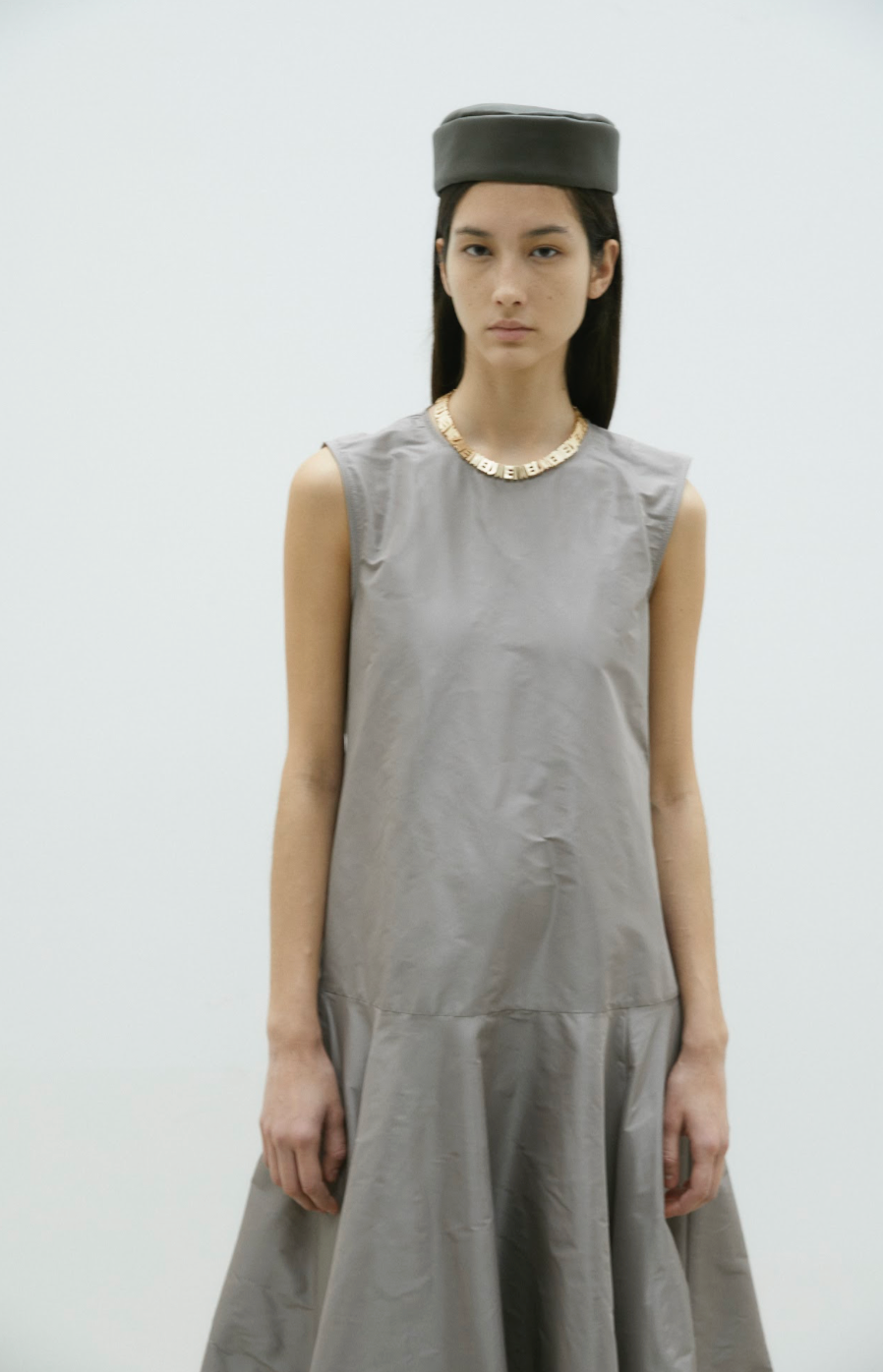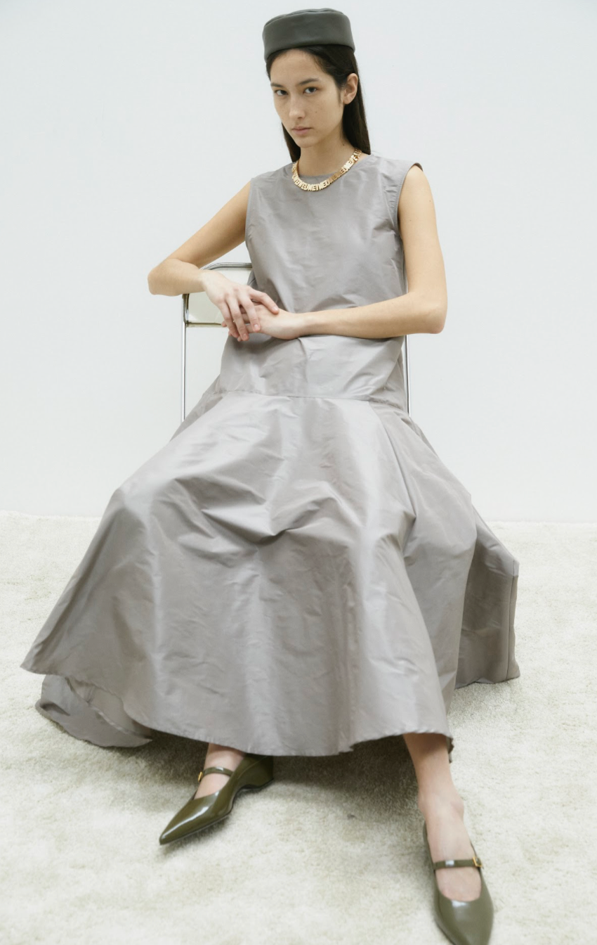 Regular price €280.00MeiMeij Mastice Taffeta Sleeveless Drop Waist Dress.