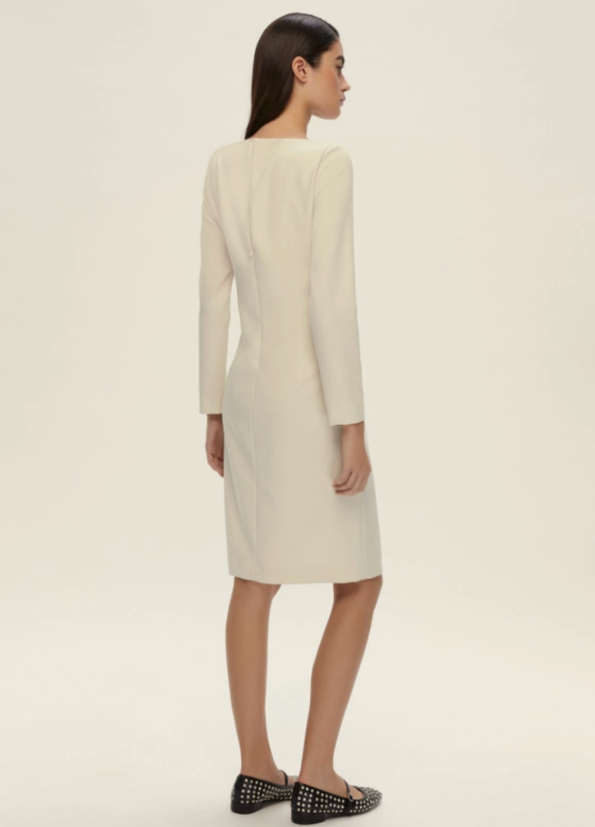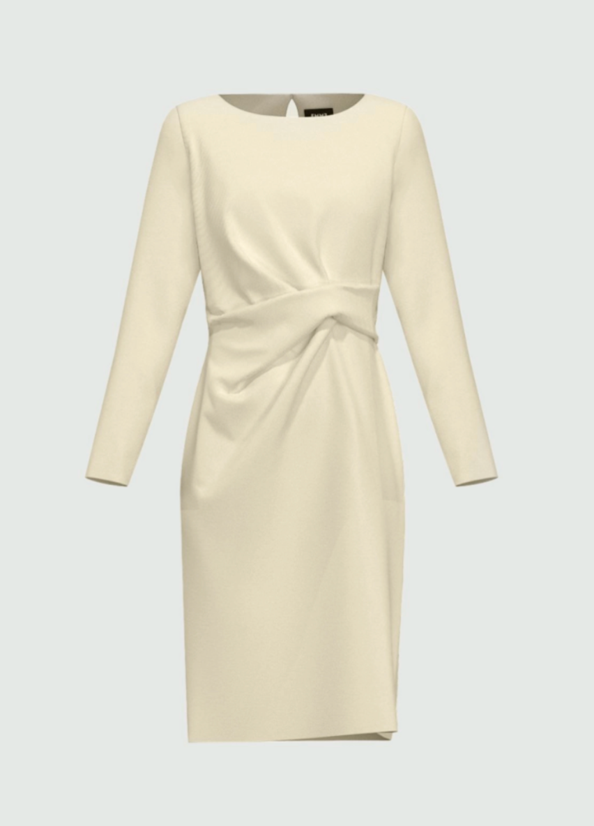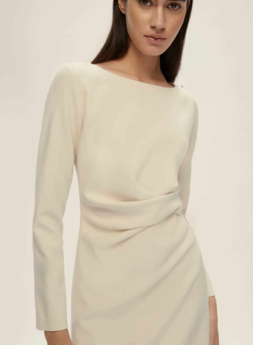 Regular price €170.00Emme Ecru Mid Length Long Sleeve Stretch Fabric Dress With Ruched Effect Waist.