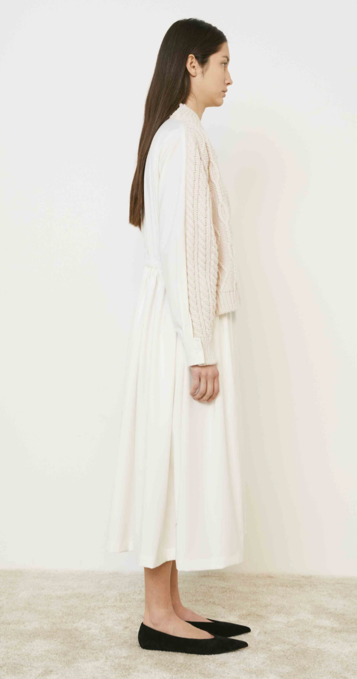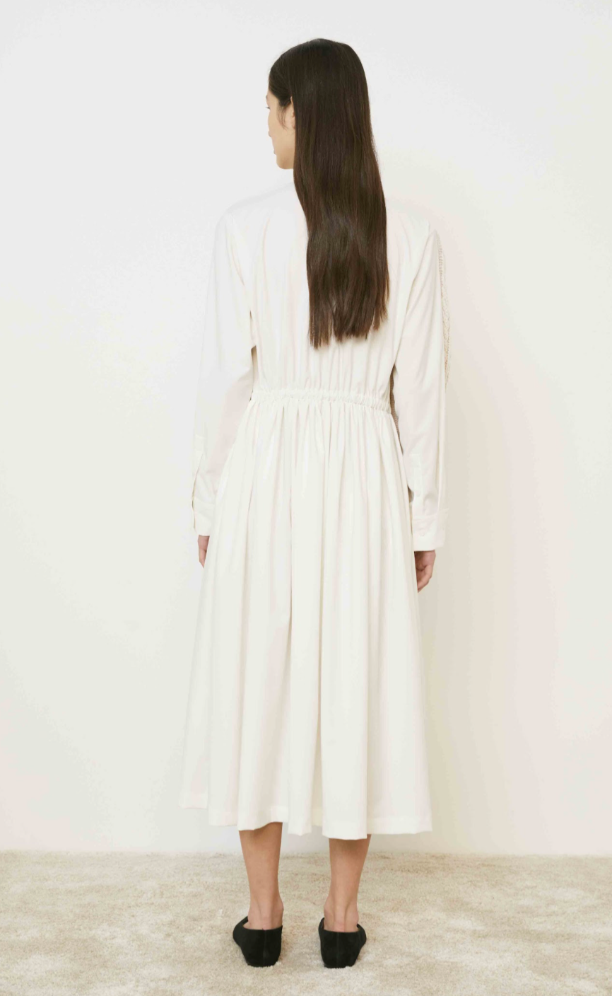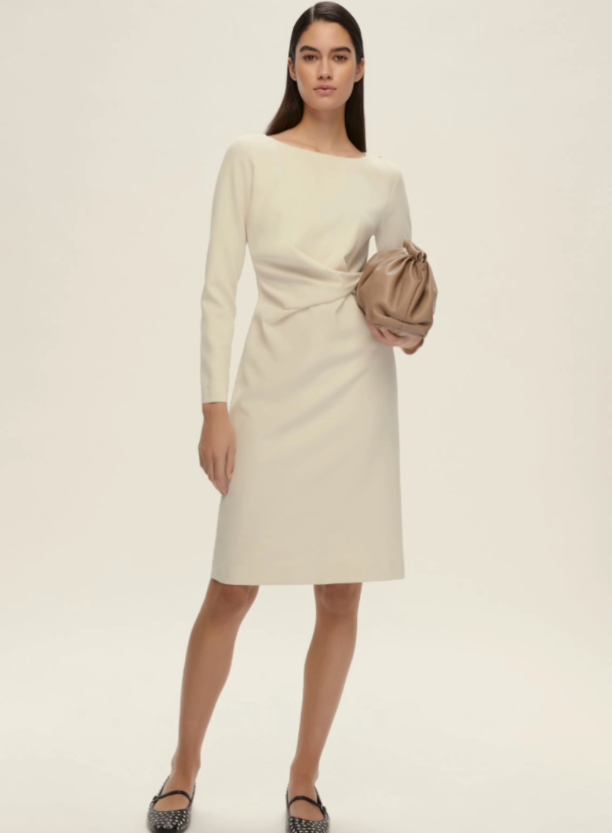 Regular price €170.00Emme Ecru Mid Length Long Sleeve Stretch Fabric Dress With Ruched Effect Waist.