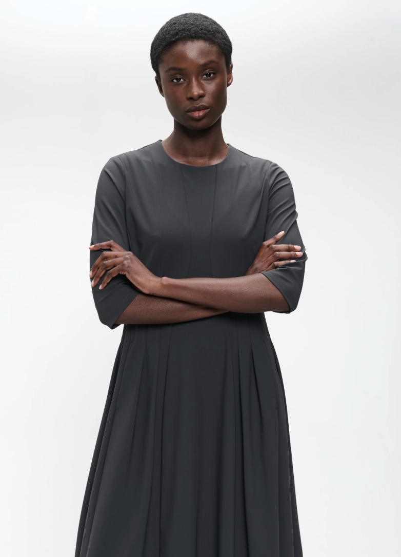 Regular price €199.95Jane Lusaka Grey Technical Fabric Long Sleeve A-Line Dress.