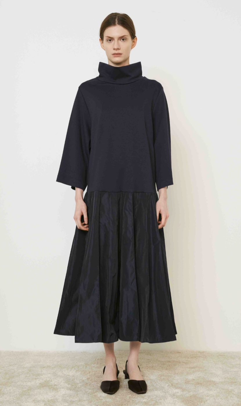 Regular price €270.00MeiMeij Blue Parisian Contrasting Taffeta Fabric Long Turtleneck Dress.
