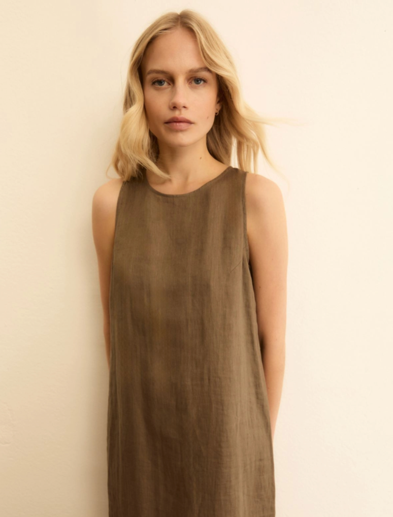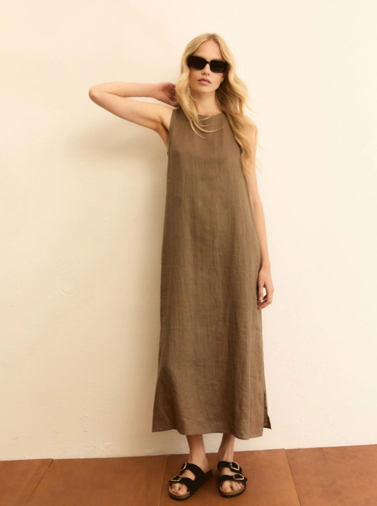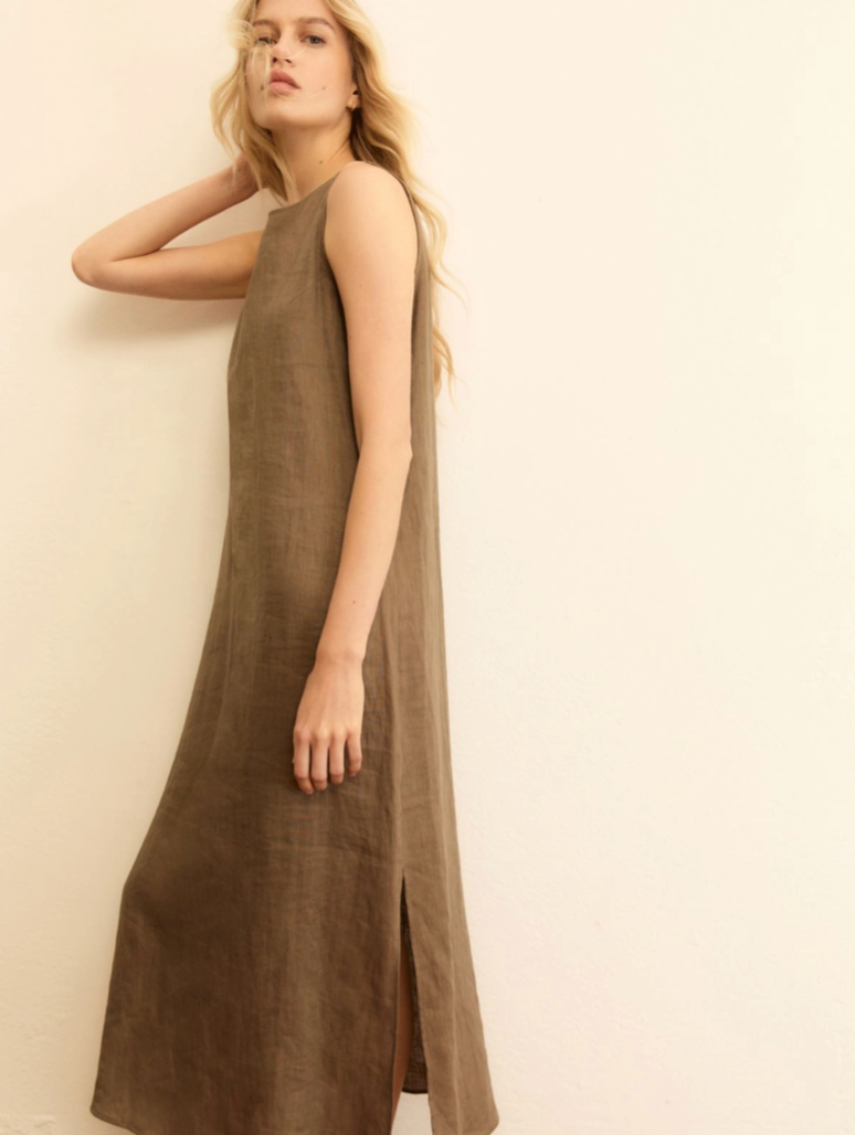 Regular price €170.00Emme Taupe 100% Washed Linen Sleeveless Long Dress With Side Slits.