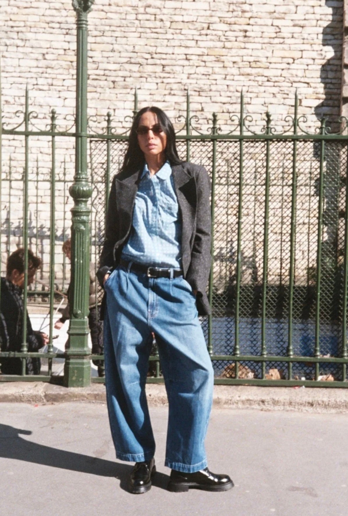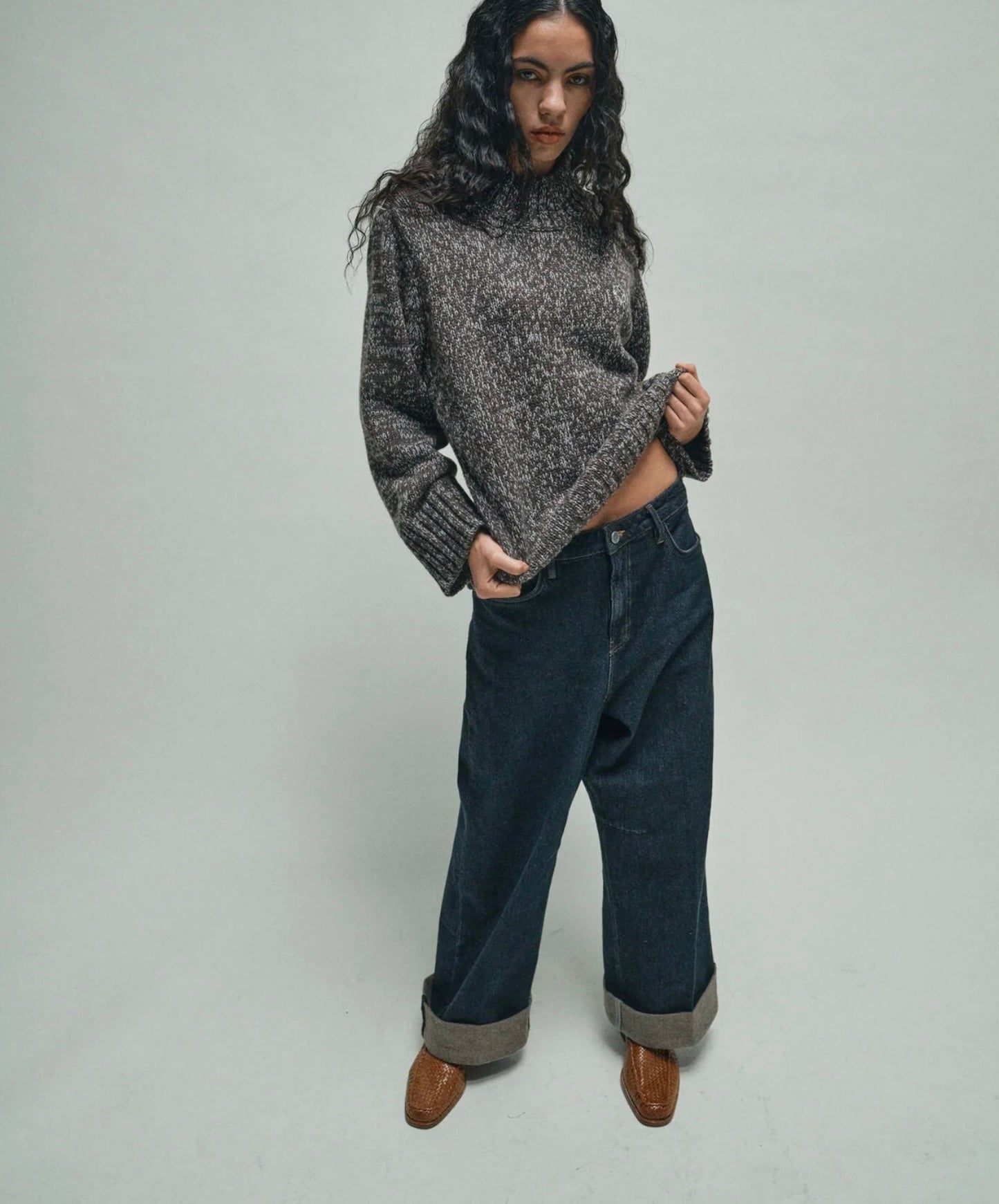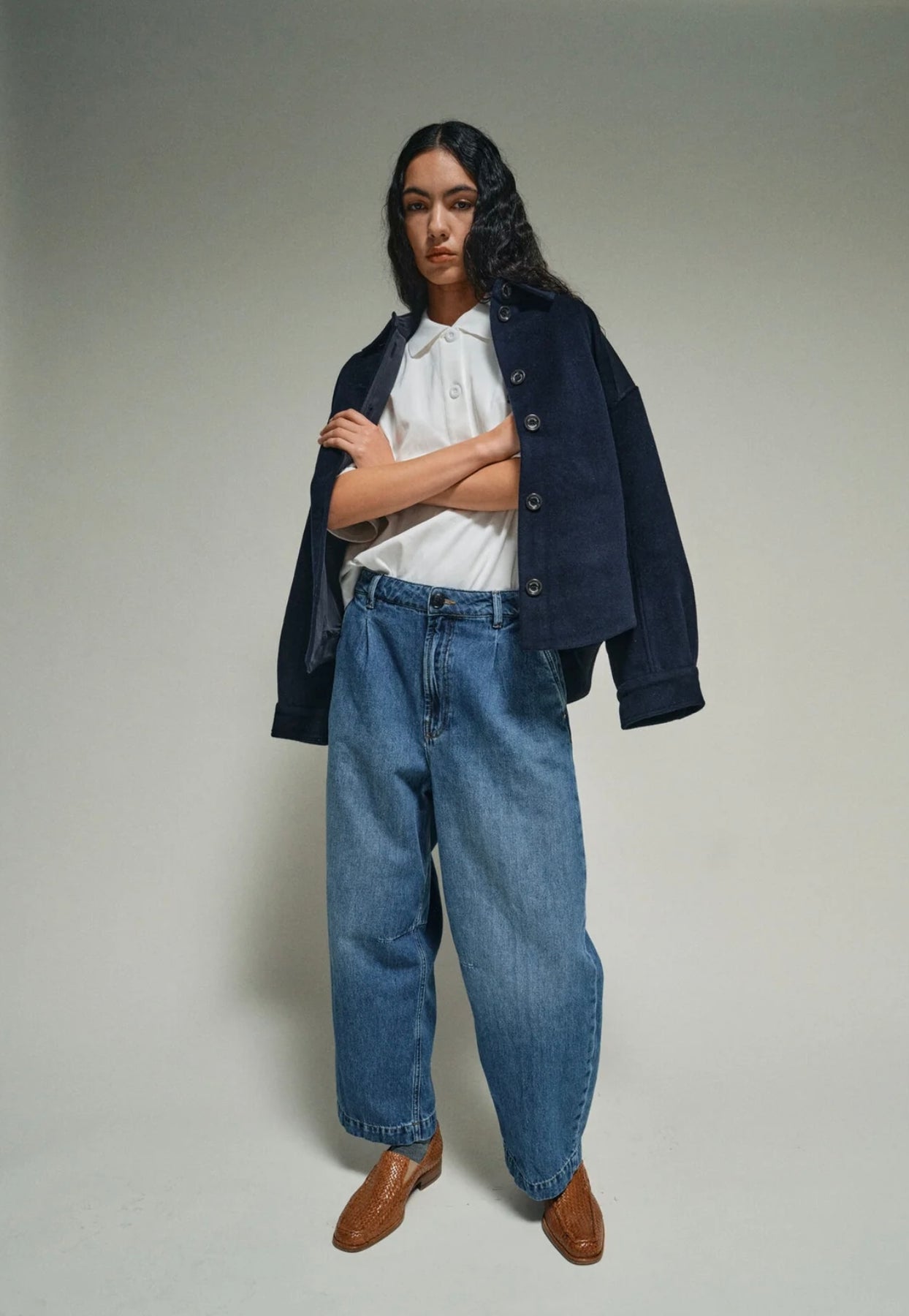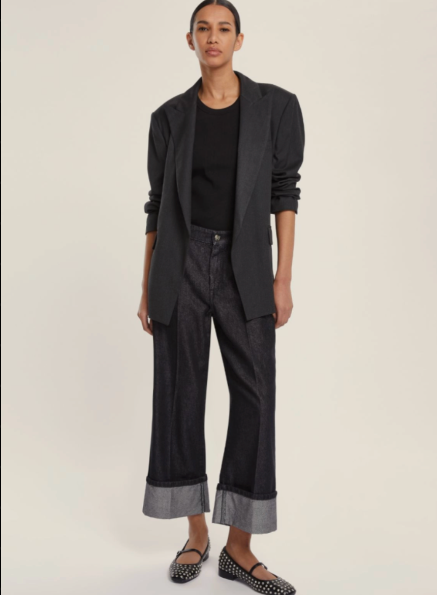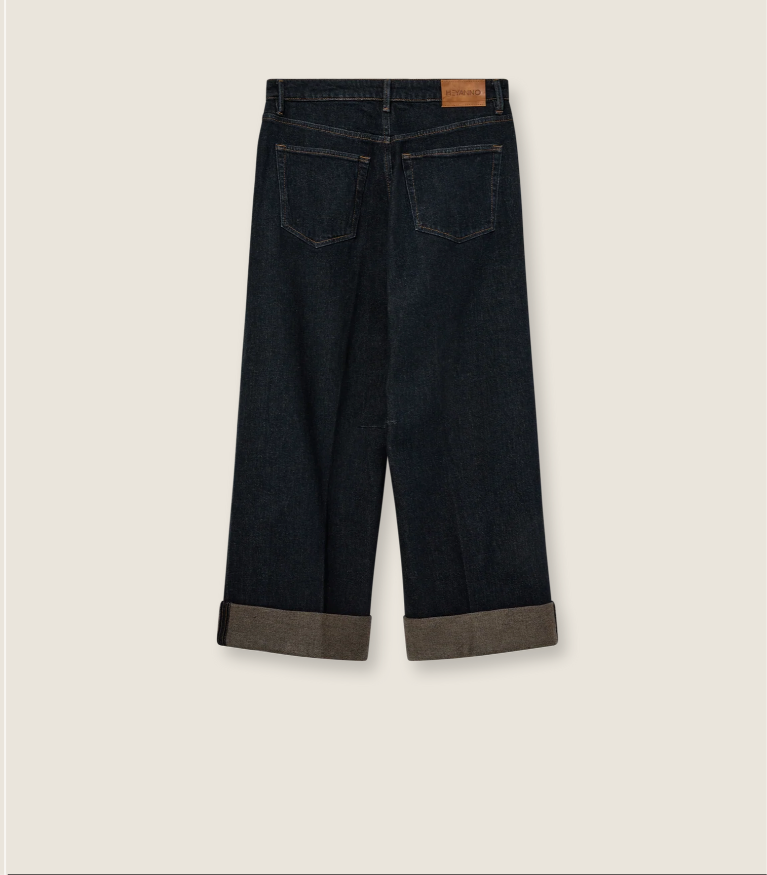 Regular price €149.99Heyanno Dark Blue Wide Leg Cropped Turn Up Vintage Style Denim Jean.