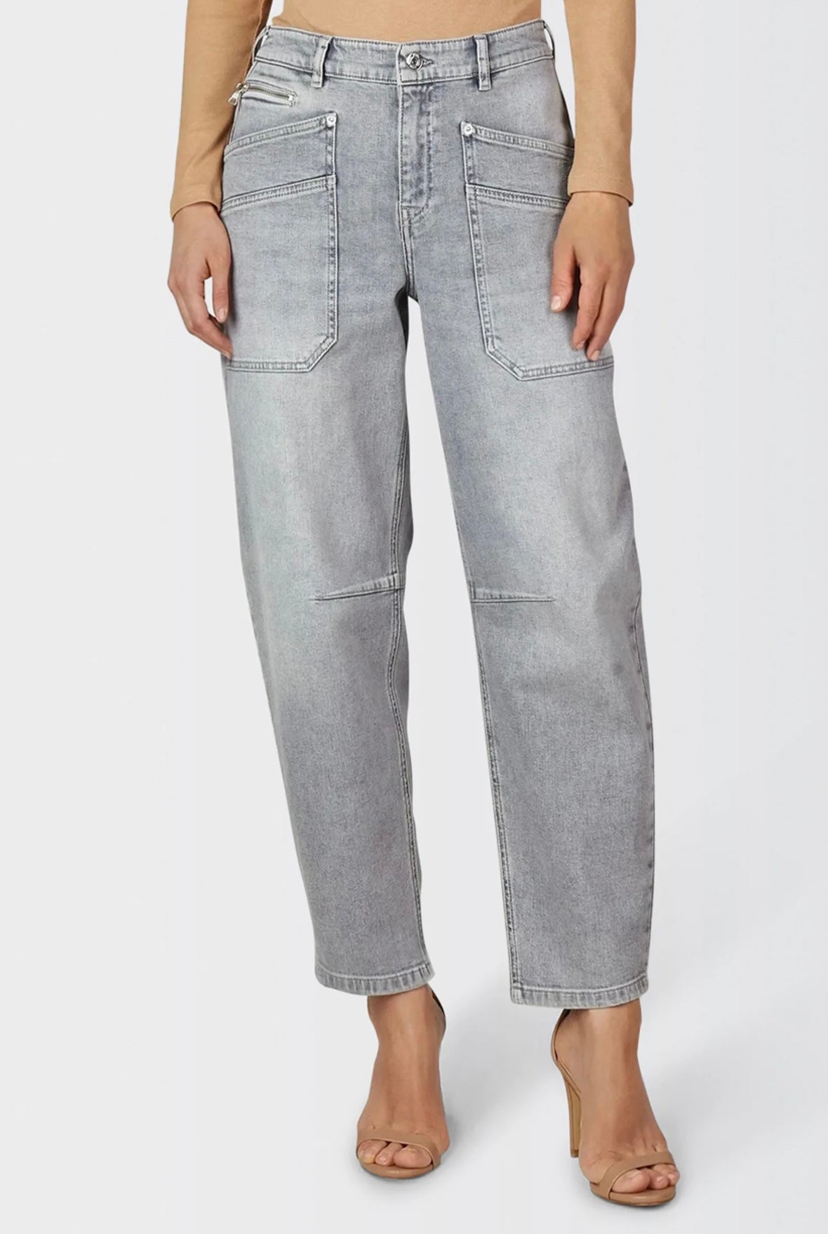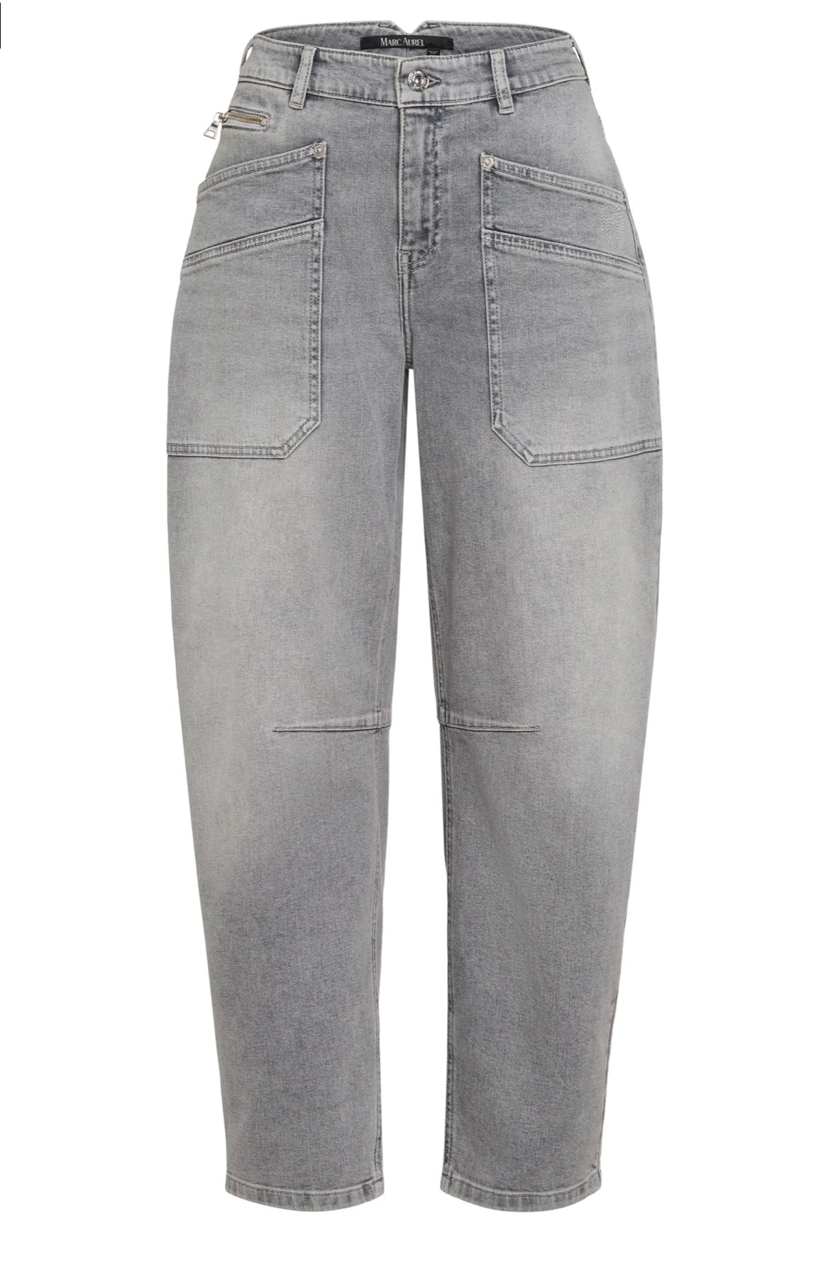 Regular price €175.00Marc Aurel Grey Cropped Stretch Denim Barrel Leg Loose Fit Jeans With Decorative Logo Detail.