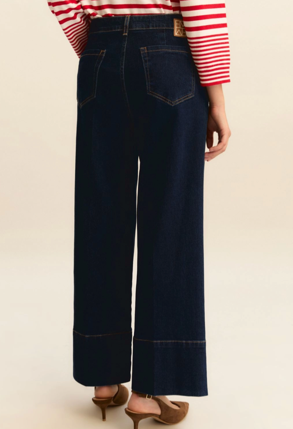 Regular price €110.00Emme Dark Blue Cropped Straight Leg Denim Jean With Turn Up Detail.