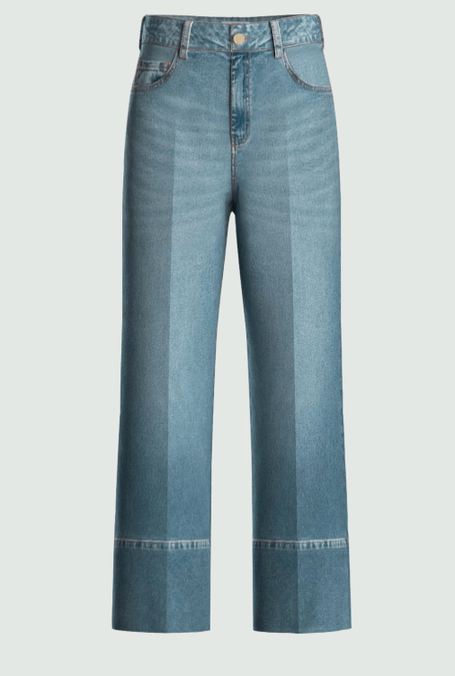 Regular price €115.00Peruzzi Denim Blue Lightweight Wide Leg Pant With Turn Up Hem.