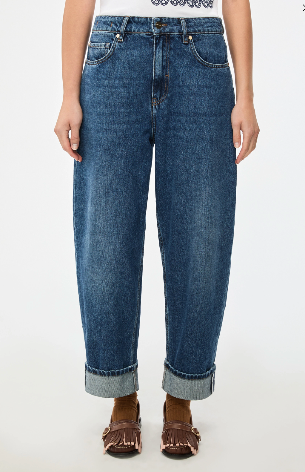 Regular price €110.00Emme Blue Cropped Straight Leg Denim Jeans With Turn Up Detail.