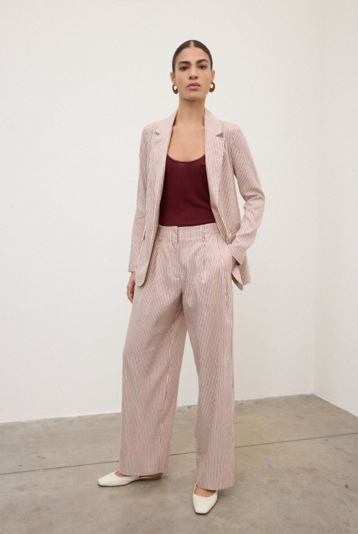 Regular price €295.00Ottod'Ame Merlot/Cream Candy Stripe Linen Blend Sheen Palazzo Pant.