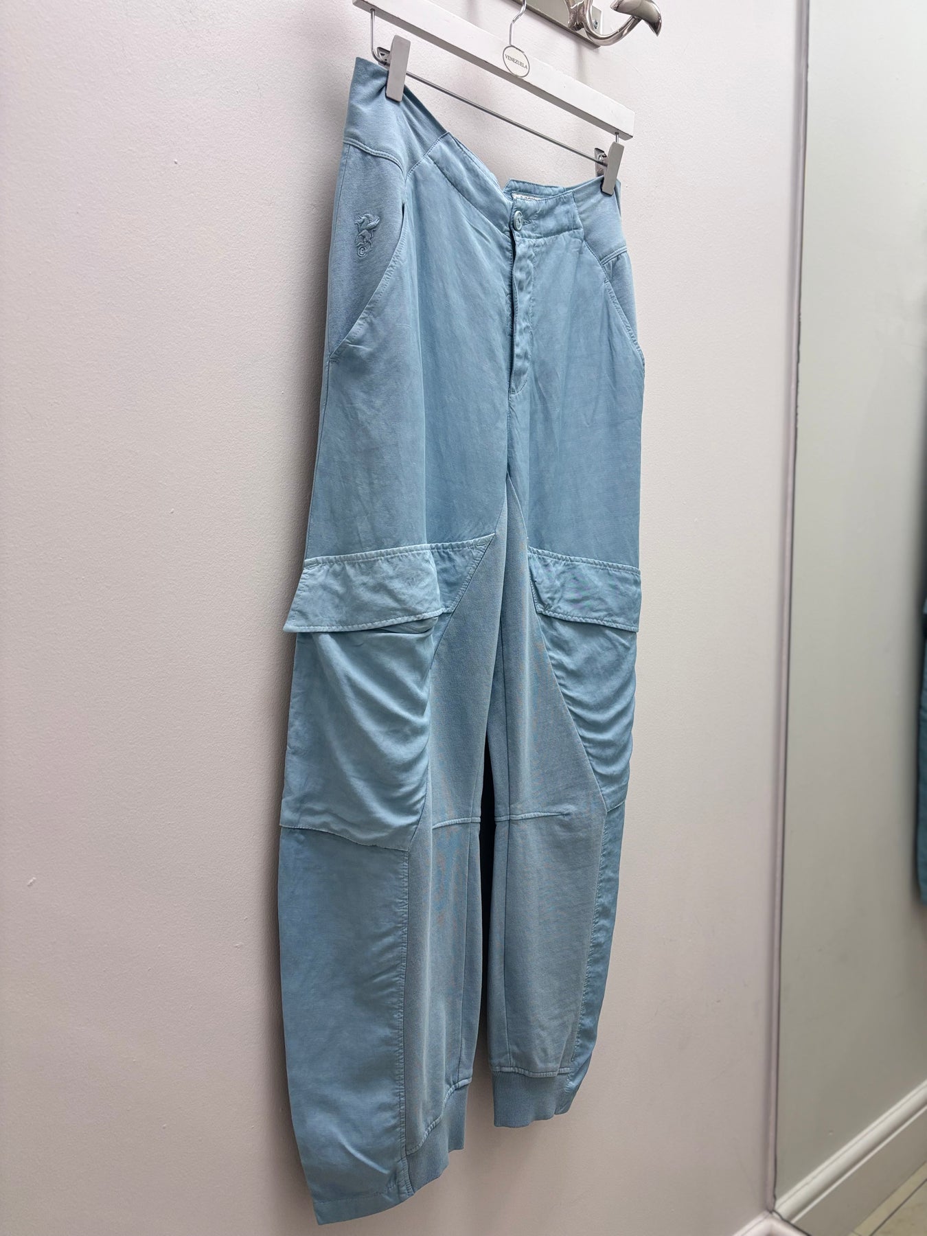 Regular price €210.00Pshopia Ice Blue Cotton Blend Barrel Leg Pant.