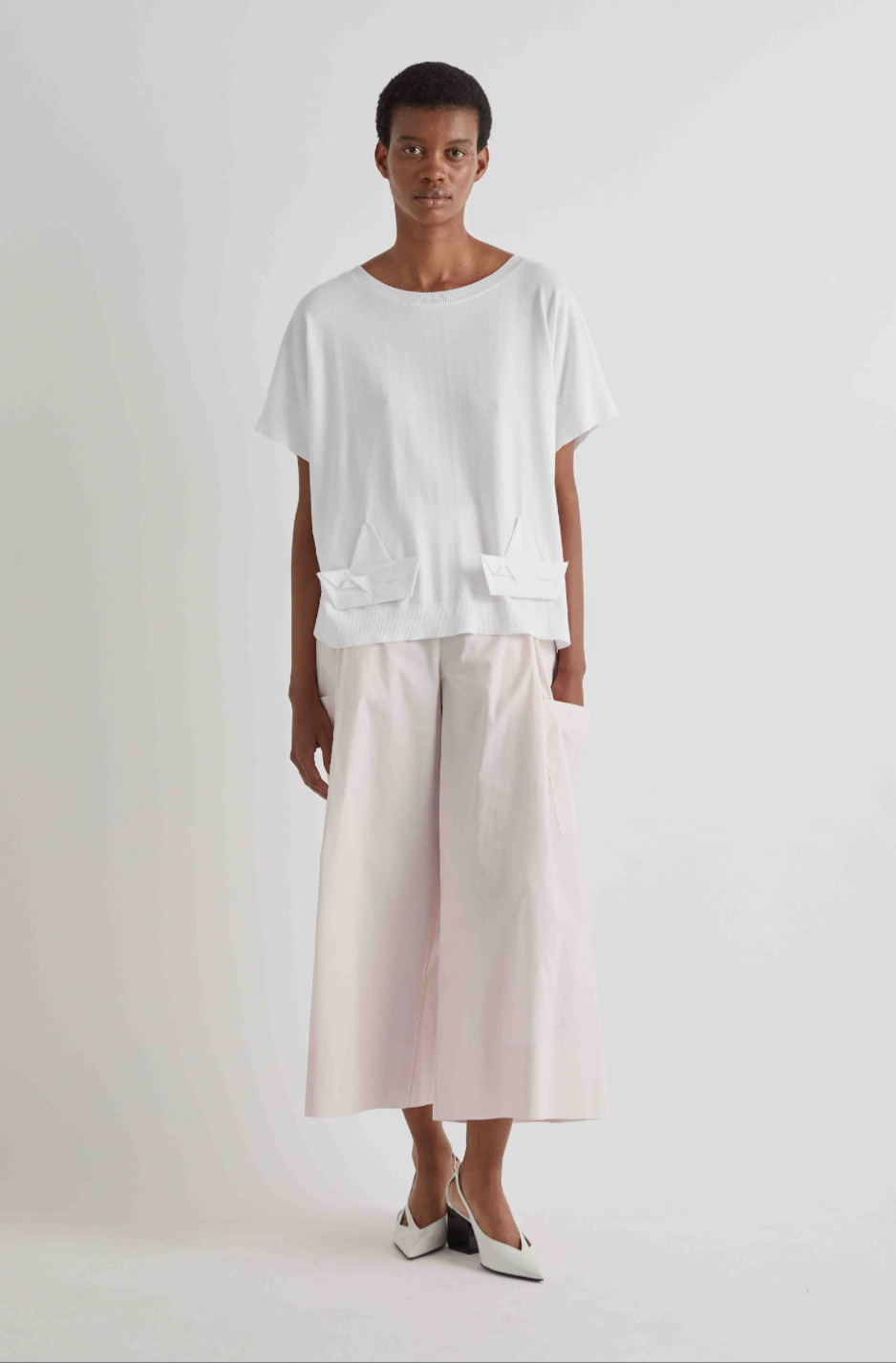 Regular price €210.00Psophia White Cotton Wide Leg 3/4 Length Pant.