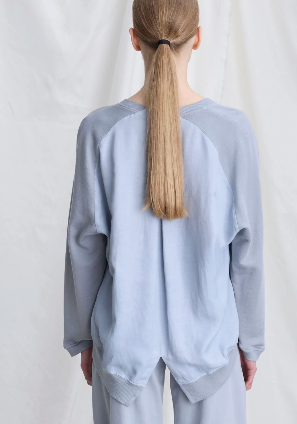 Regular price €175.00European Culture Ice Blue Contrasting Fabric High Low Casual Fit Top With Hem Slit.