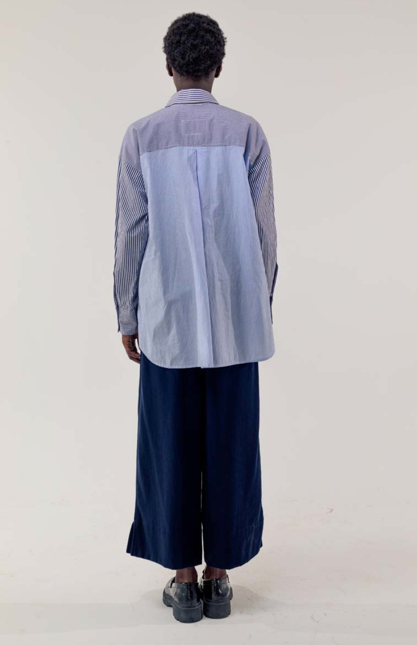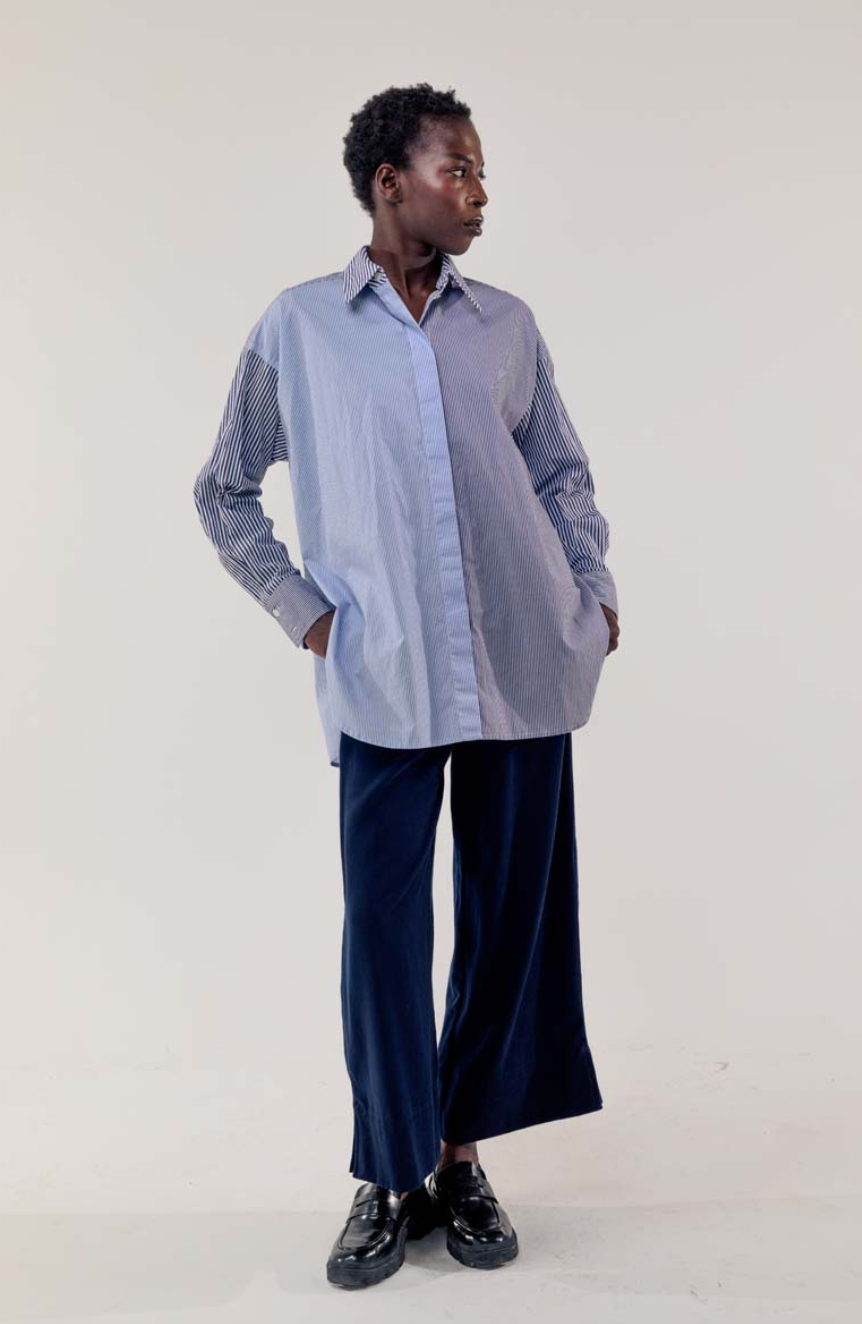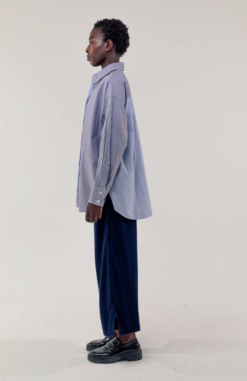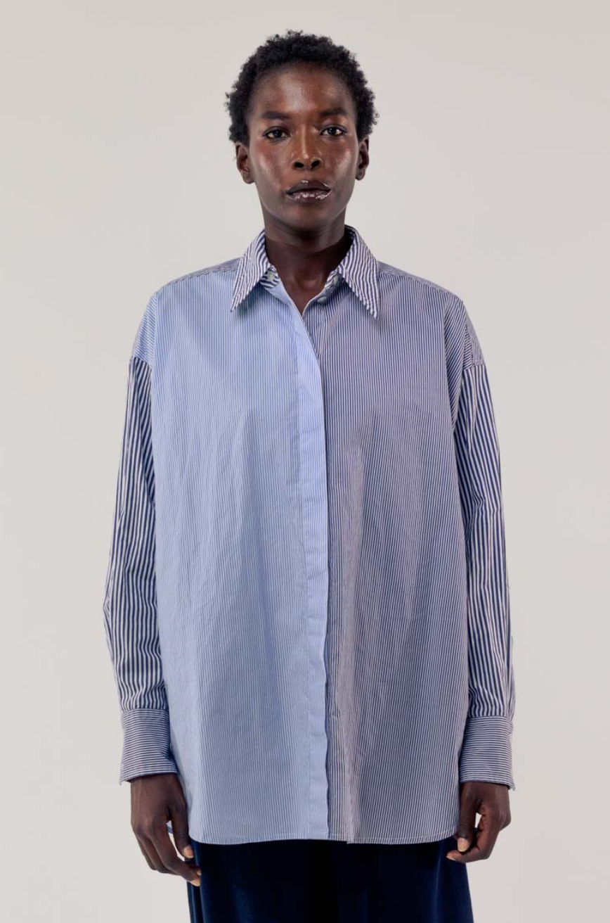 Regular price €190.00Elemente Clemente Deep Sapphire Contrasting Sripe A-Line Poplin Blouse.