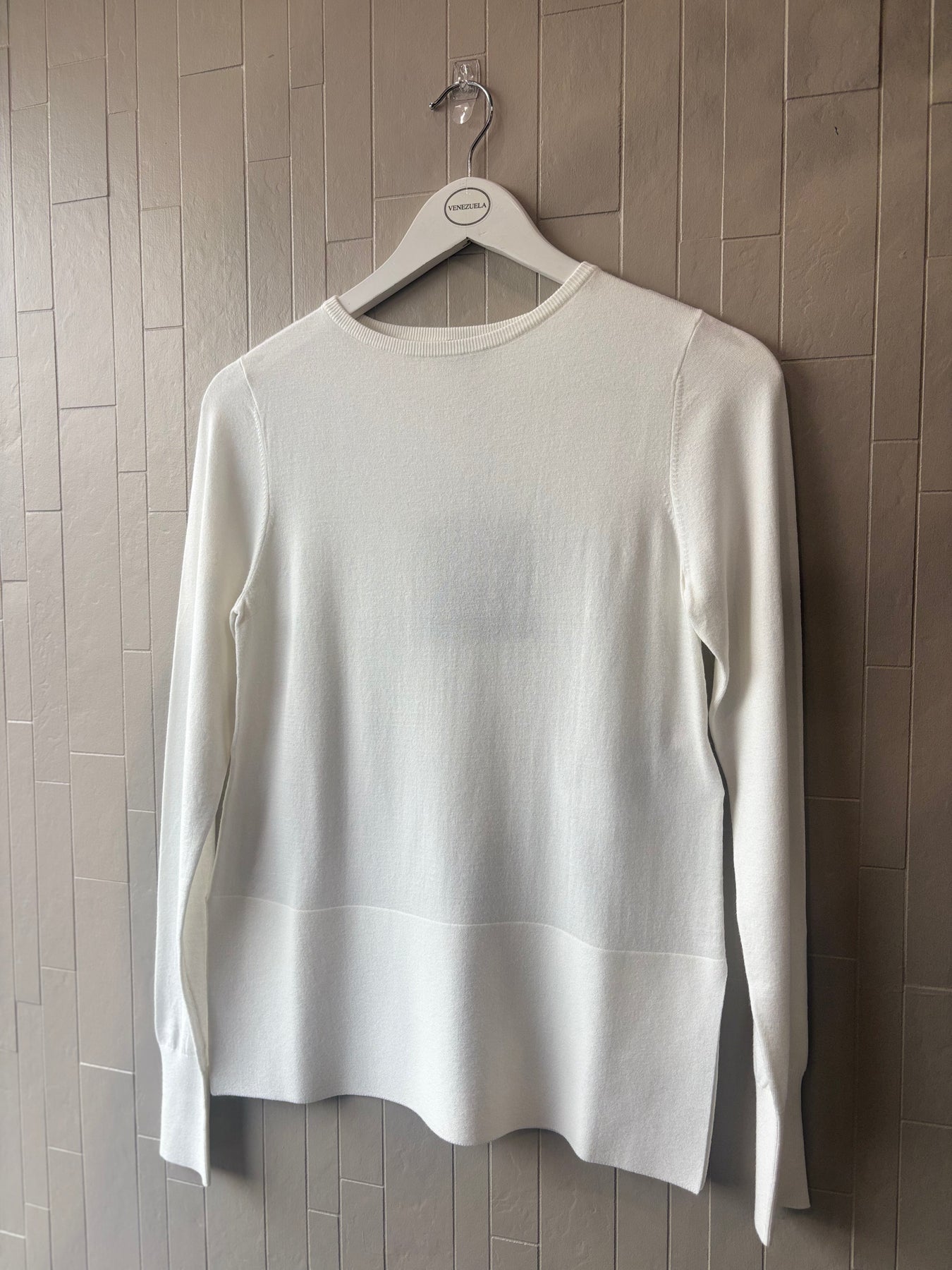 Regular price €140.00EMME Winter White Fine Knit Round Neck Sweater.