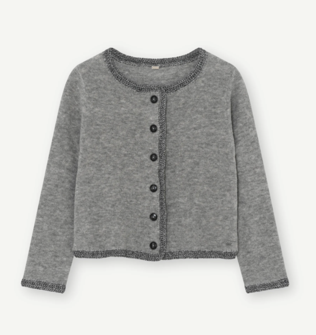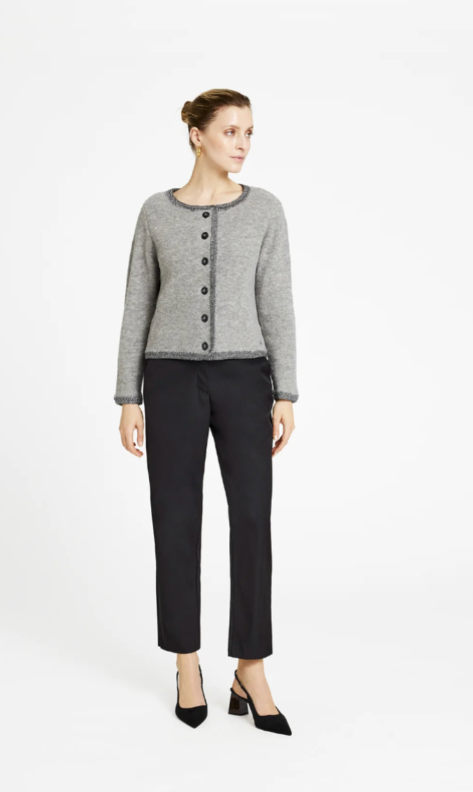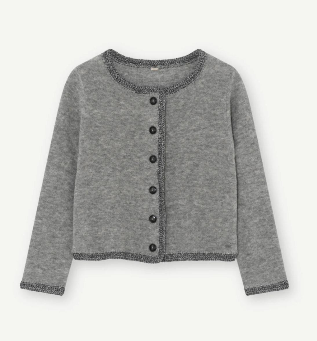 Regular price €229.00Gustav Elephant Grey Merino Wool Blend Lurex Trim Cardigan.