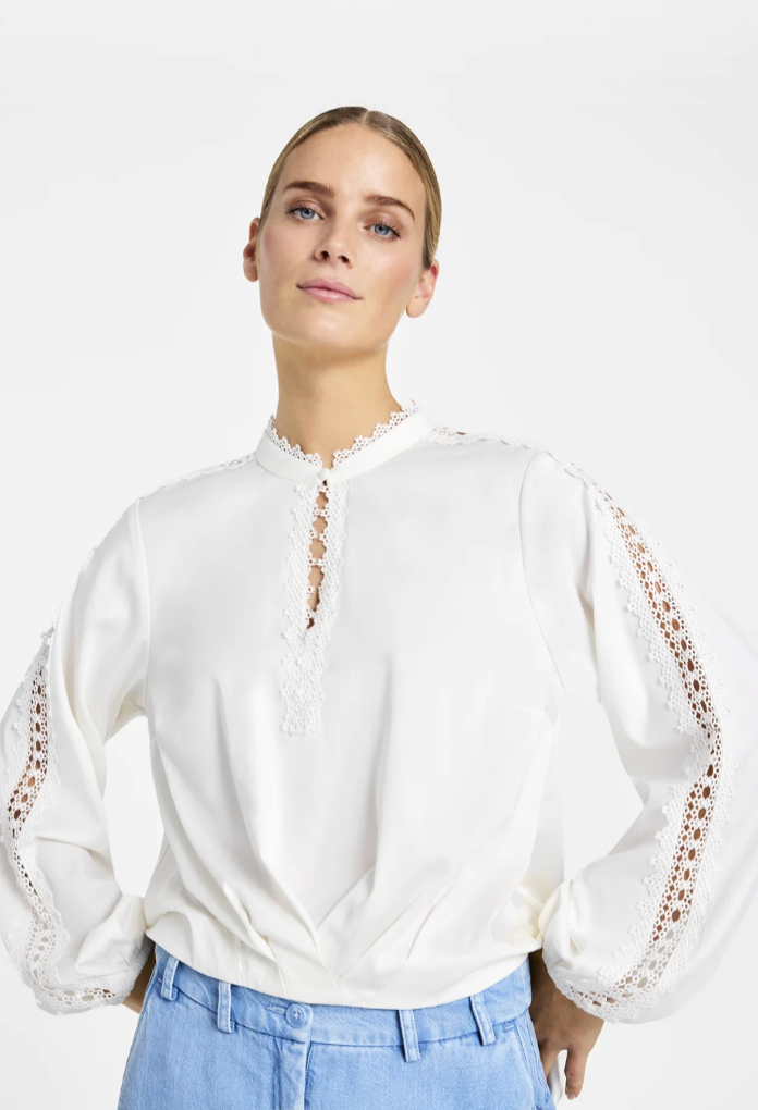 Regular price €189.00Unisa Off White Cupro/Rayon Blend Lace Trim Balloon Sleeve Blouse.