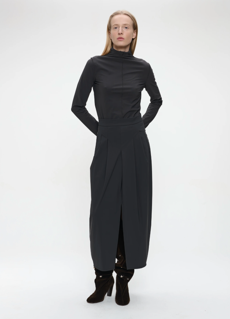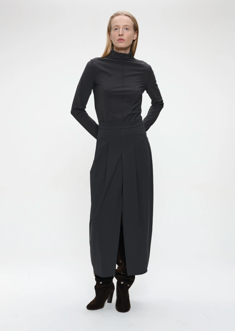 Regular price €169.95Jack Lusaka Black Technical Fabric Long Tulip Skirt.