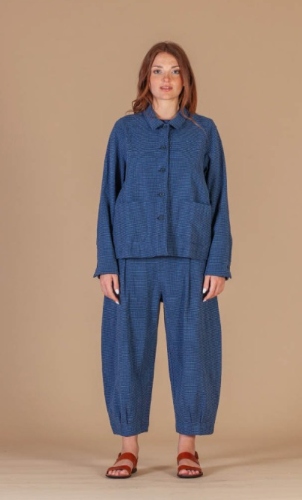 Regular price €245.00Mama B Blue Linen Blend Crinkled Check Jacket