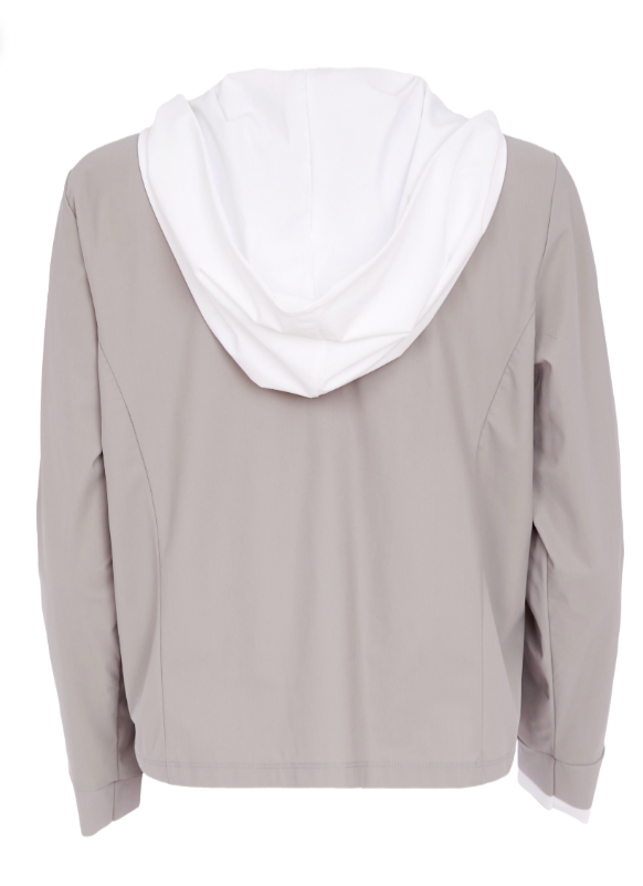 Regular price €140.00Naya Taupe Travel Fabric Fitted Jacket With Contrast White Hood /Trim.