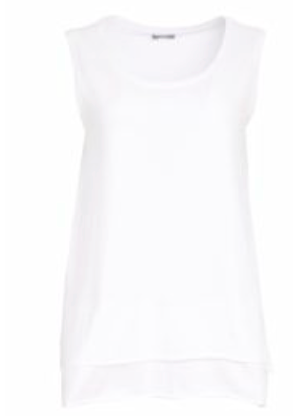 Regular price €75.00Naya White Cotton Sleeveless Raw Hemmed Top With Vent Back Panel.