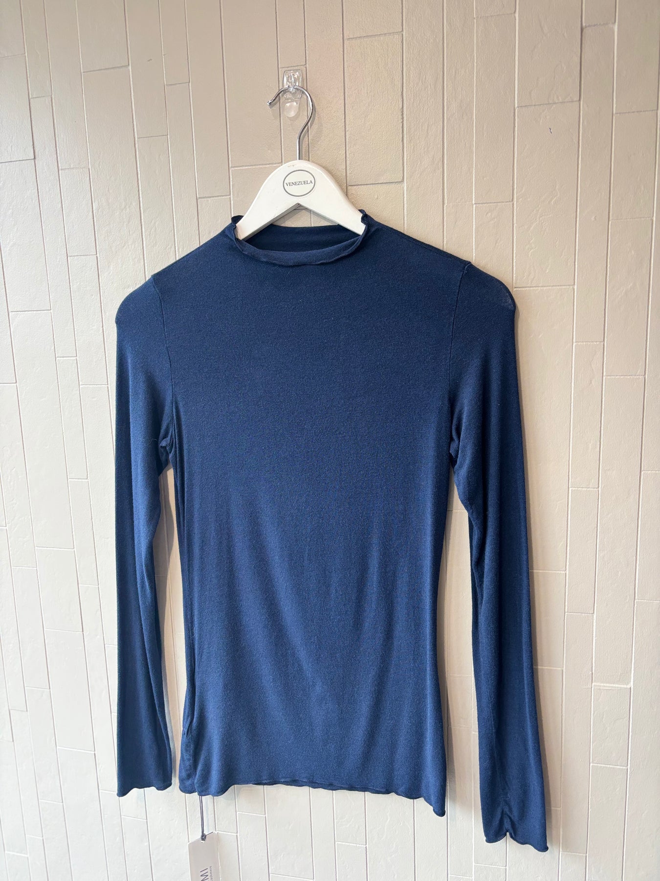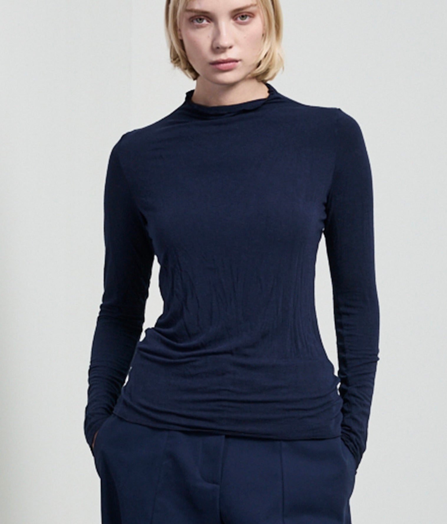 Regular price €80.00Neirami Navy Fine Cotton Long Sleeve High Neck T-Shirt.
