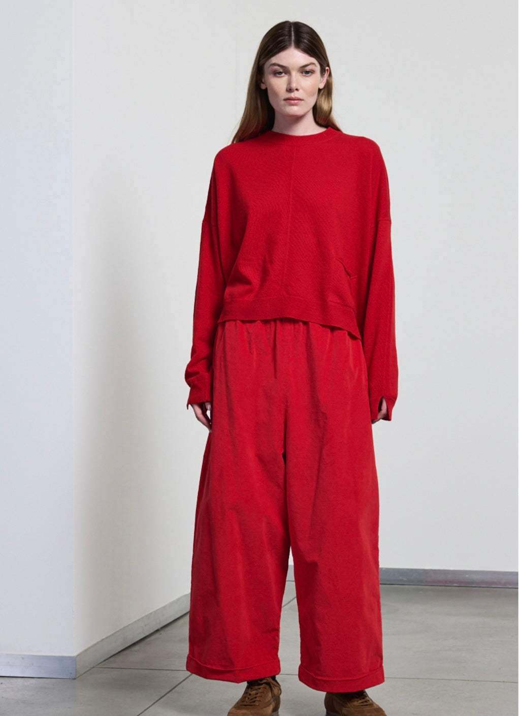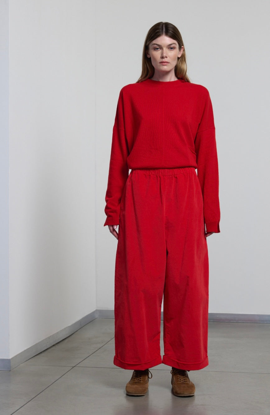 Regular price €225.00Neirmai Red Velour/Cotton Wide Leg Pant With Turn Up Hem.