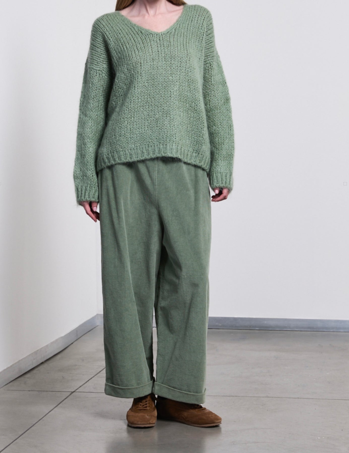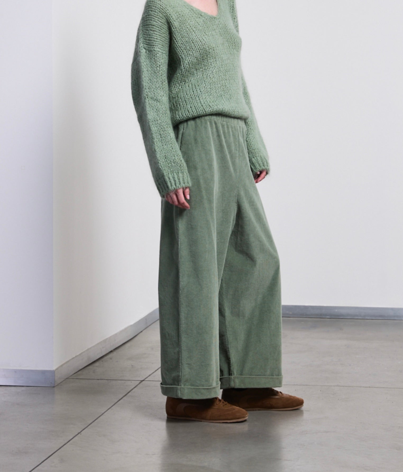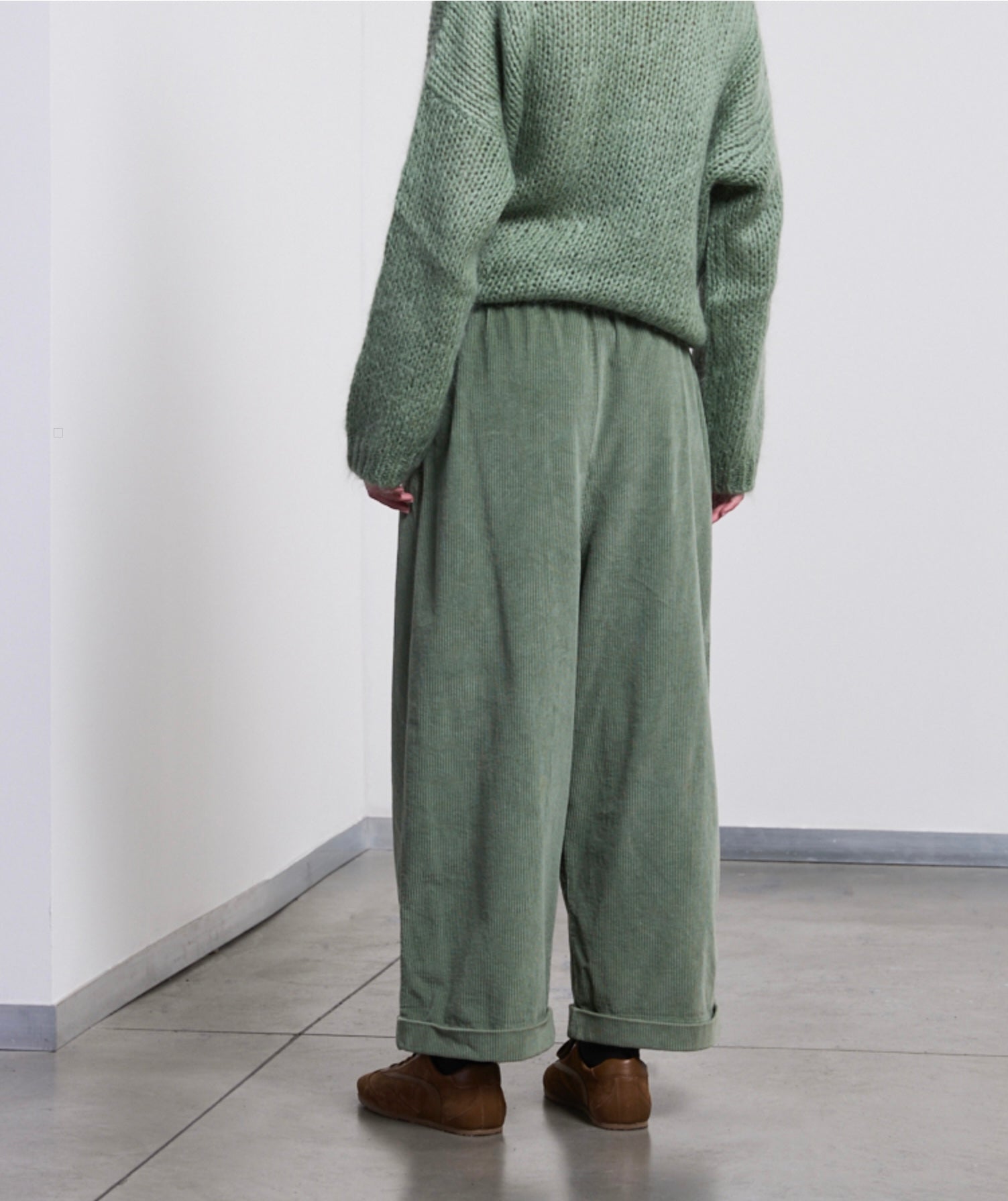 Regular price €225.00Neirami Pesto Green Cord Wide Leg Pant With Turn Up Hem.