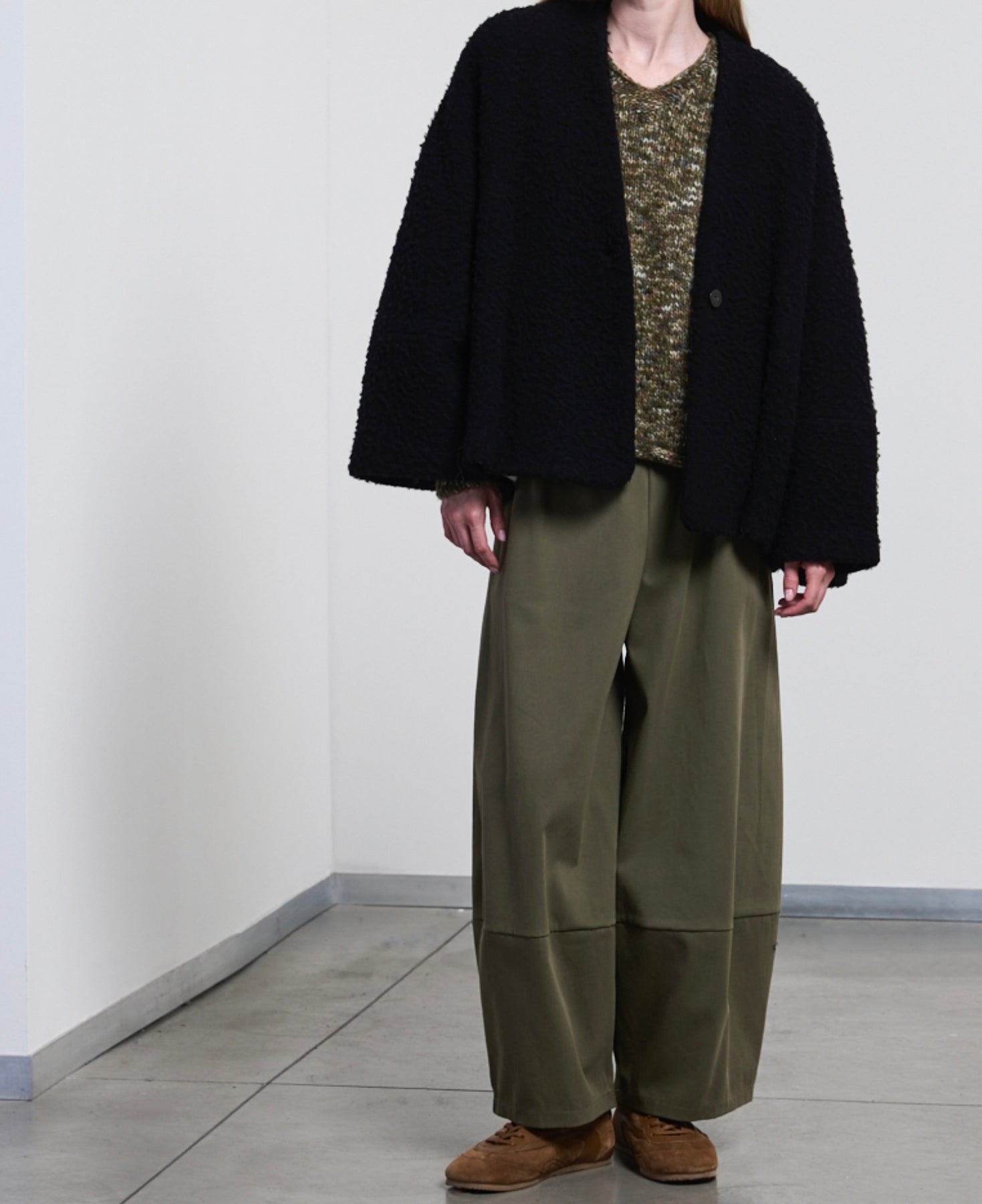 Regular price €215.00Neirami Kahki Green Barrel Leg Heavy Cotton Pant With Elasticated Waistband.