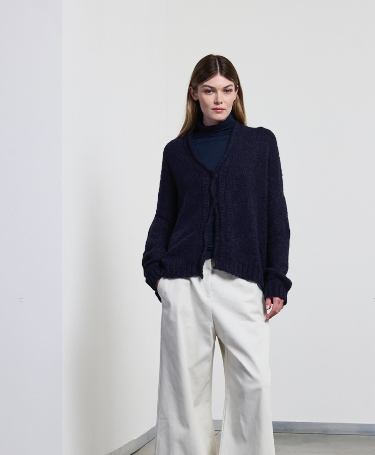 Regular price €170.00Neirmai Navy Loose Knit Alpaca Blend Oversized V-Neck Cardigan.