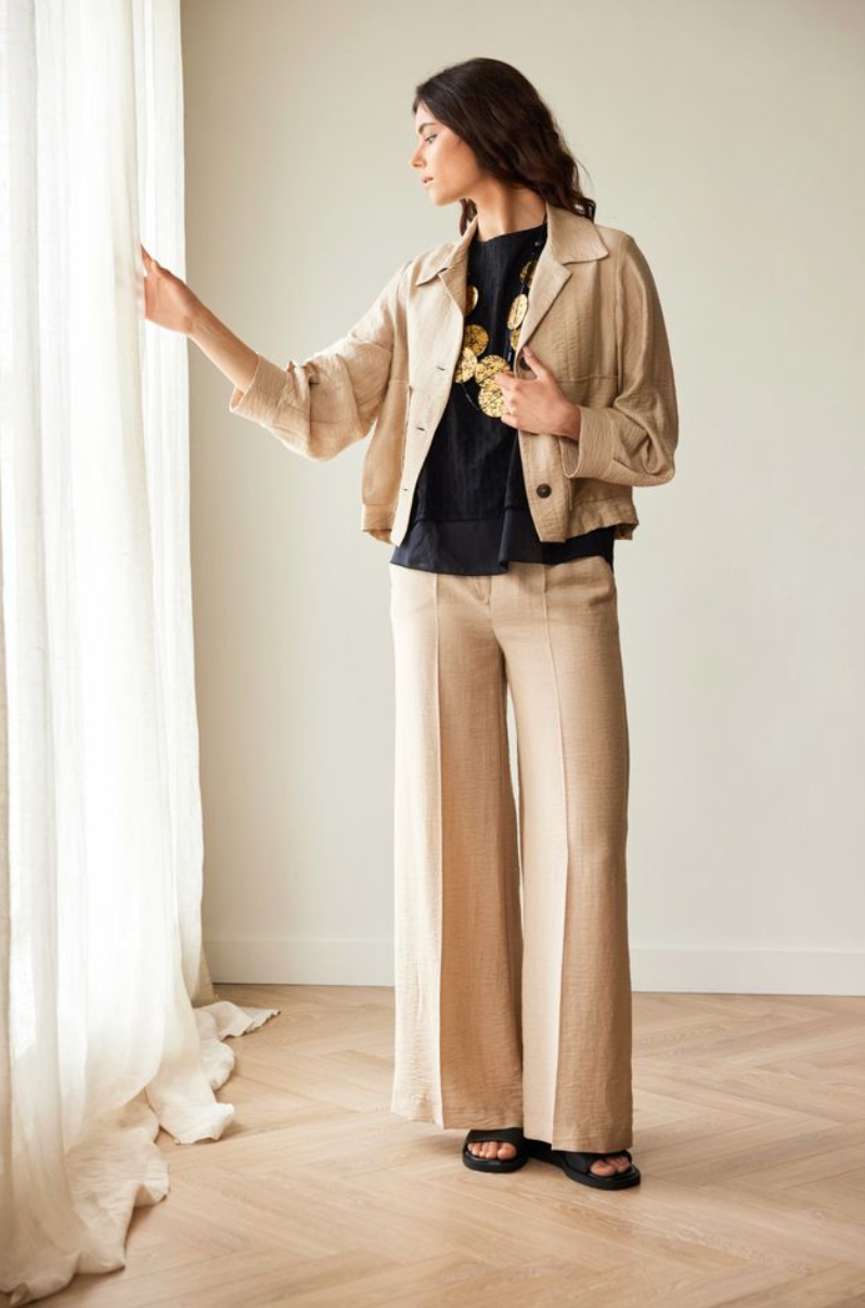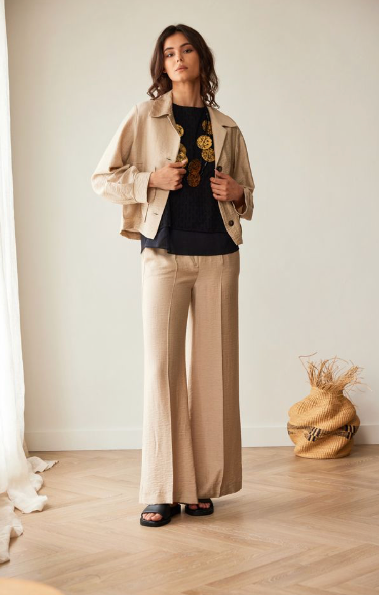 Regular price €115.00Peruzzi Fawn Linen Straight Leg Pant With Elasticated Waistband.