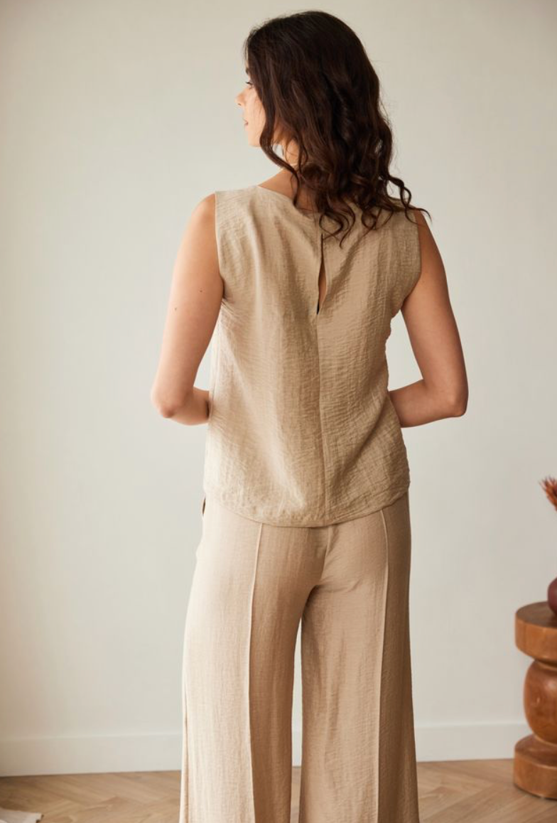 Fawn Pleat Shell Top