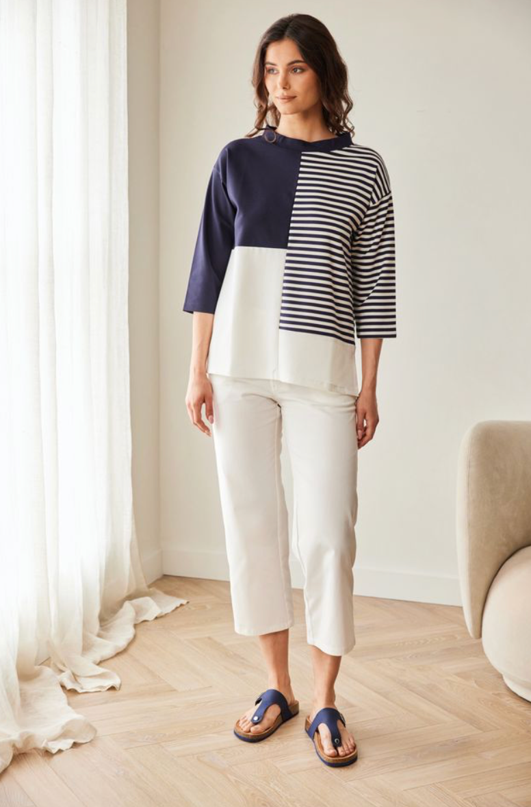 Cream/Navy Stripe Top