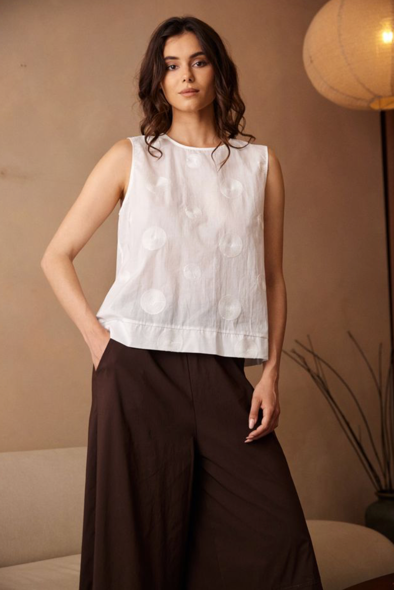 Regular price €75.00Peruzzi White Embroidered Circle Sleeveless Top.