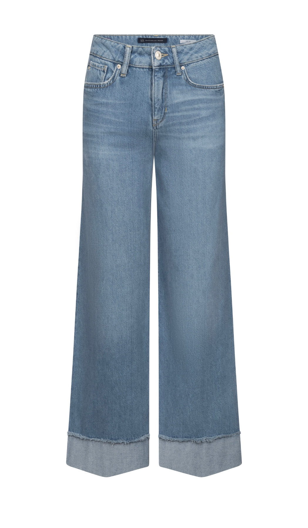 Regular price €210.00Raffaello Rossi Used Blue Soft Denim Wide Leg Jean With Raw Hem Turn Up.