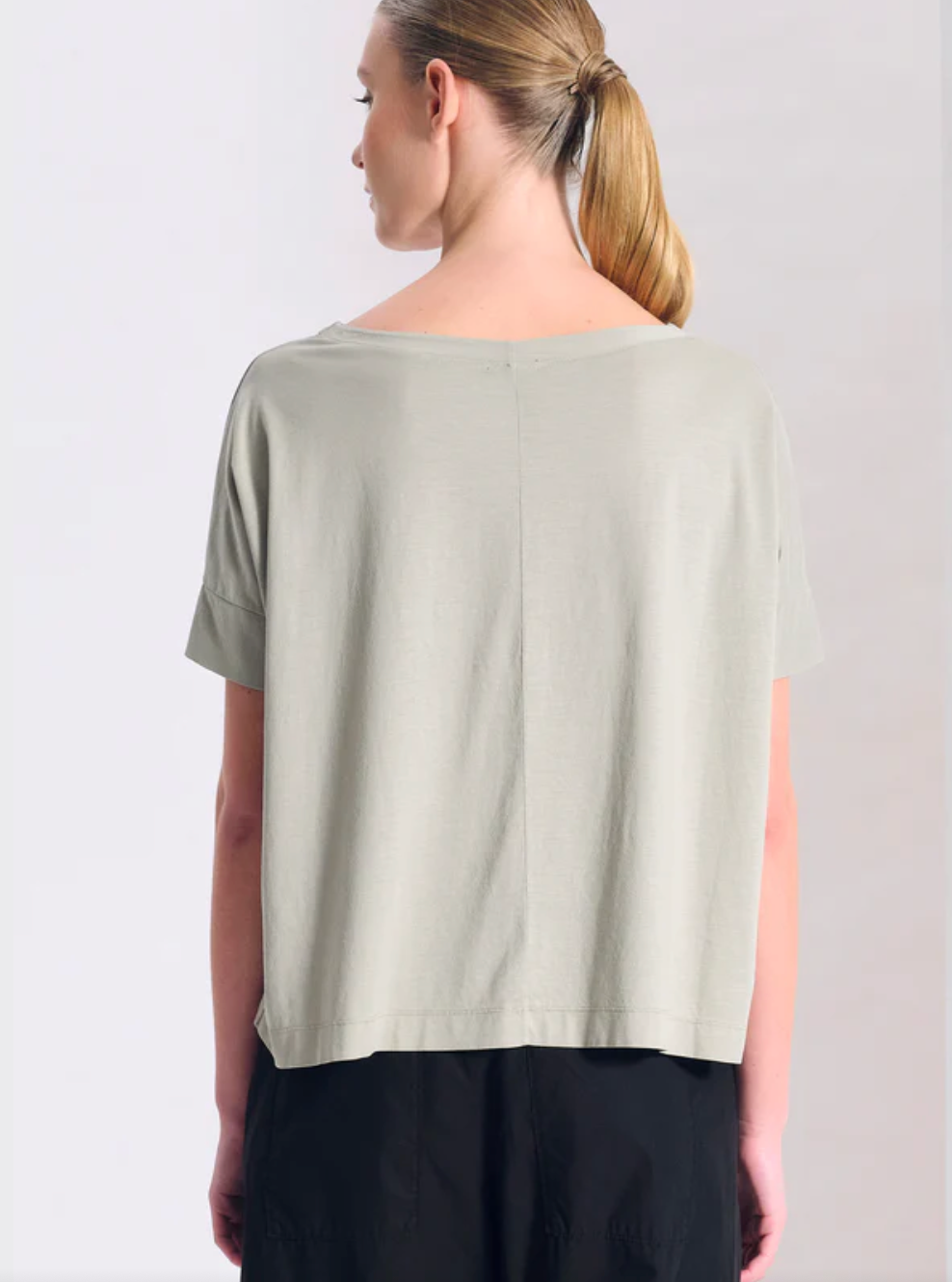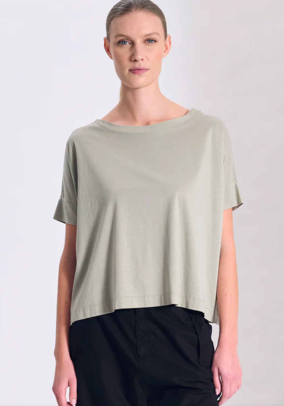 Regular price €125.00Transit Sage Green Cotton/Jersey Oversized Half Sleeve T-Shirt With Viscose Neckline.